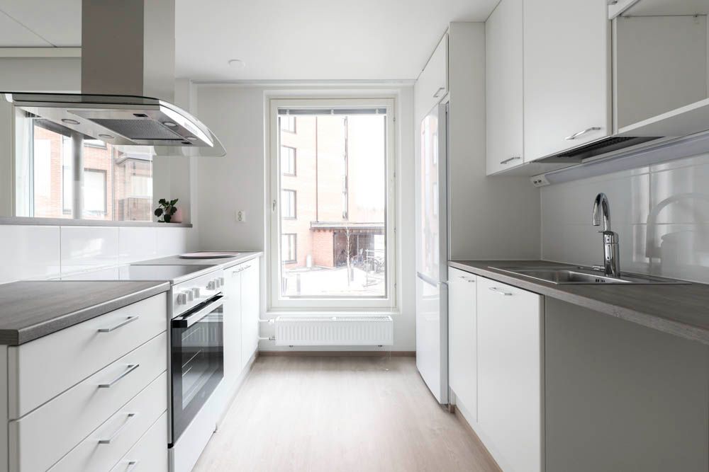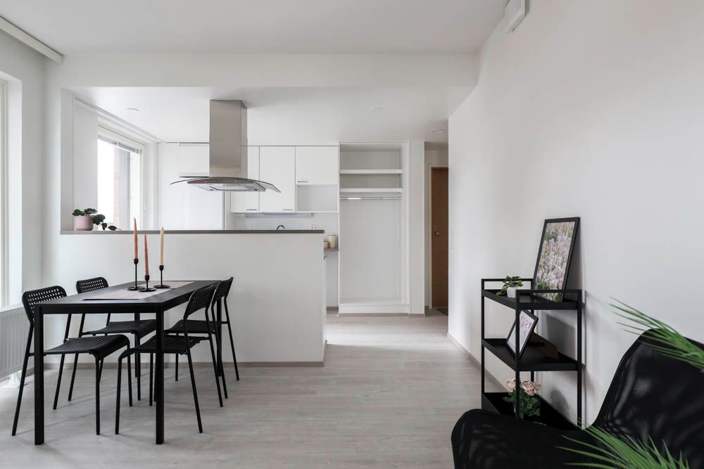 Kuudennen kerroksen kaksio, jossa toimiva pohjaratkaisu. Avokeittiö tarjoaa runsaasti laskutilaa. Seurustelu vieraiden kanssa ruuanlaiton lomassa on vaivatonta. Makuuhuoneessa on koko seinän pituiset kaapistot. Asumismukavuutta lisäävät oma sauna sekä lasitettu parveke. Ikkunat avautuvat pohjoiseen ja itään, ja parveke suuntautuu itään.