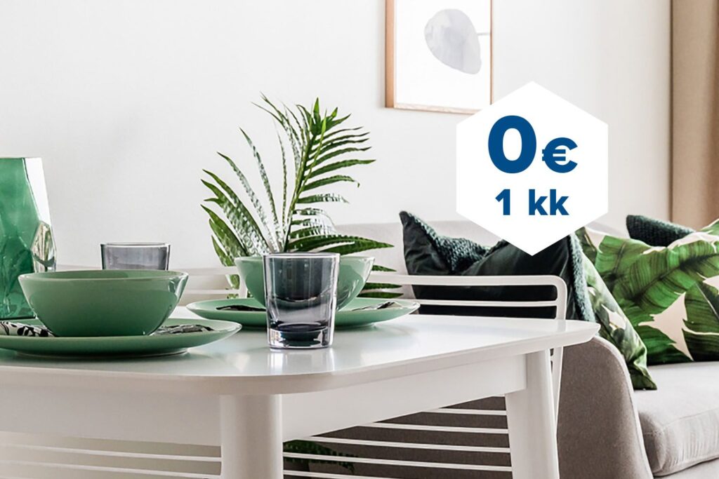 Tee sopimus nyt – saat ensimmäisen kuukauden käyttövastikkeen hintaan 0 €. Etu on voimassa 15.4.2026 saakka ja koskee uusia asiakkaita. Vesi- ja autopaikkamaksut normaalisti.