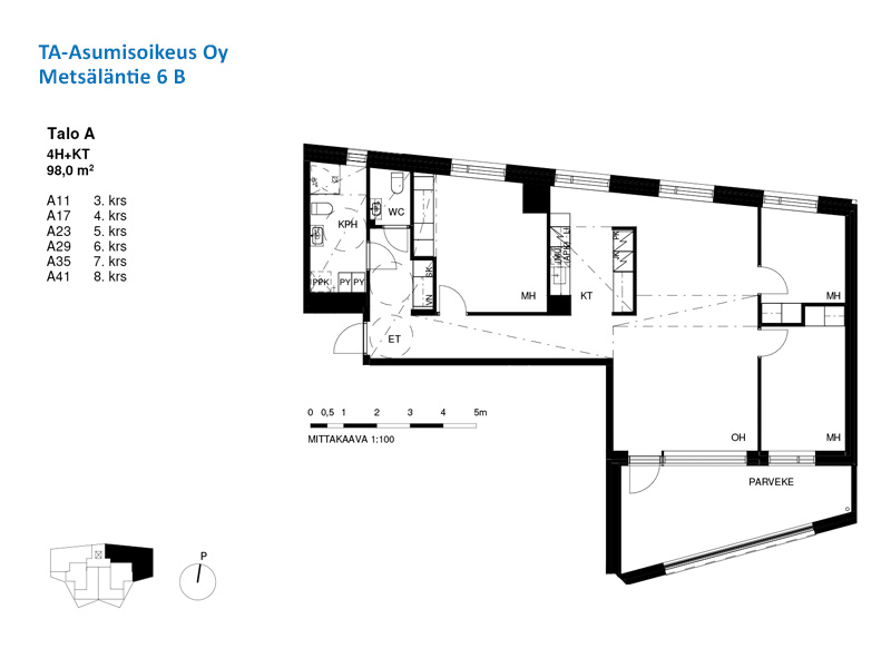 Metsäläntie 6b on valmistunut vuonna 2021 ja kohteessa on kaksi asumisoikeuskerrostaloa, joissa on yhteensä 64 asuntoa. Asukkaiden käytössä ovat monipuoliset yhteistilat, kuten viihtyisät talosaunat A-talon ylimmässä kerroksessa, kerhohuone sekä pesula ja kuivaushuone B-talossa sekä runsaasti varastotilaa polkupyörille ja ulkoiluvälineille. Jokaiselle asunnolle on myös oma tilava irtainvarasto. Autoille on paikkoja korttelin yhteisessä pysäköintihallissa. Korttelin yhteispihalla on oleskelutilaa sekä leikkialue lapsille. Pihan suunnittelussa on kiinnitetty erityishuomiota valaistukseen ja viheralueisiin. Postipuiston kehittyvä asuinalue sijaitsee hyvien kulkuyhteyksien ja Helsingin Keskuspuiston kupeessa. Uudella, urbaanilla alueella otetaan erityisesti huomioon energia- ja ekotehokkuus sekä asumisen yhteisöllisyys. Alueelle oman leimansa luovat erilaiset asuntokorttelit ja yhtenäiset sisäpihat, puistovyöhyke sekä alueen asukkaiden yhteiskäytössä oleva yhteisötalo Postivarikko, jossa on mm. kuntosali, harrastetilaa sekä ohjattua liikuntaa. Keski-Pasilassa sijaitseva kaupunkikeskus Mall of Tripla tarjoaa suuren määrän erikoisliikkeitä, ravintoloita ja palveluja lähellä kotia. Asumisoikeustalojen kanssa samassa korttelissa toimii päivittäistavarakauppa. Postipuistosta on Pasilan asemalle matkaa noin pari kilometriä sekä Käpylän ja Ilmalan asemille noin kilometri. Pasilasta on loistavat liikenneyhteydet Helsingin ydinkeskustaan ja kaikkialle Suomeen. Postipuiston poikki kulkee myös busseja, ja alueella on alustava varaus myös raitiotielle. Keskuspuistossa on erinomaiset ulkoilu- ja virkistysmahdollisuudet ympäri vuoden. Pohjois-Pasilan asukasluku kasvaa yli 12 000 asukkaaseen 2030-luvulla. Asuntojen lisäksi alueelle rakentuu noin 2 000 uutta työpaikkaa. Alueelle rakennetaan tulevina vuosina myös kaksi päiväkotia ja koulu.