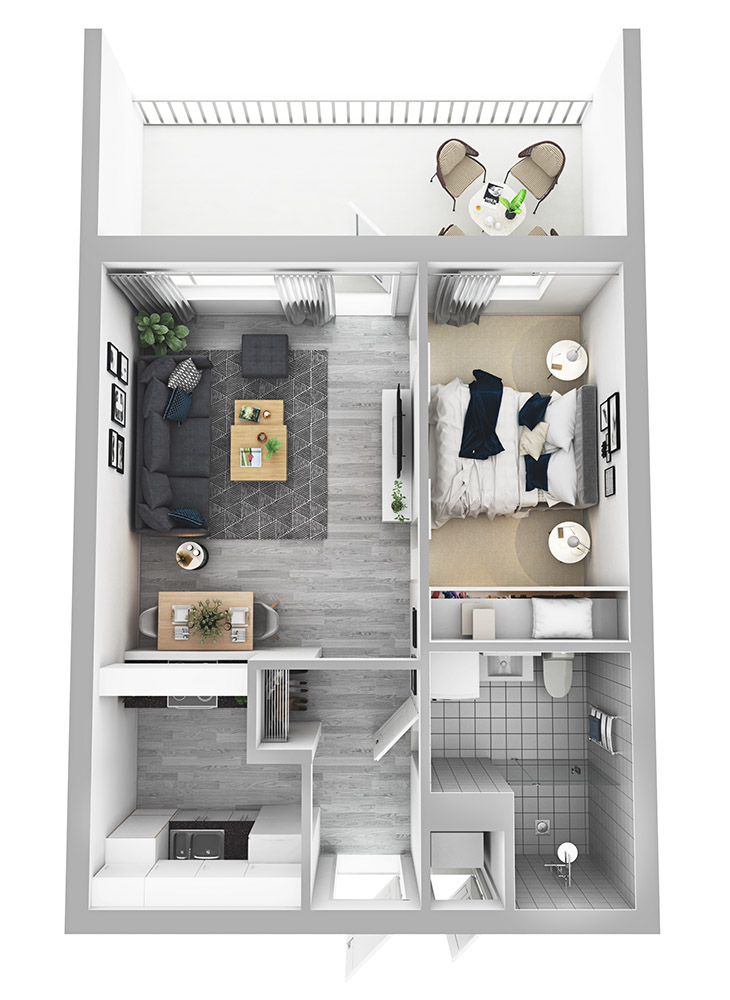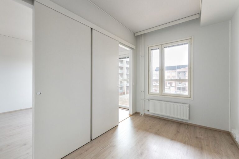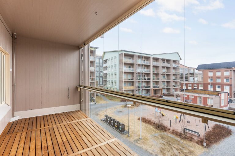 Vapaana toimivapohjainen ja persoonallinen kolmannen kerroksen kaksio. Keittiön kalustevälitila tuo luonnonvaloa keittiön ja makuuhuoneessa on kätevät liukuovet. Tilava lasitettu parveke suuntautuu kaakkoon puutalokorttelin sisäpihan puolelle.