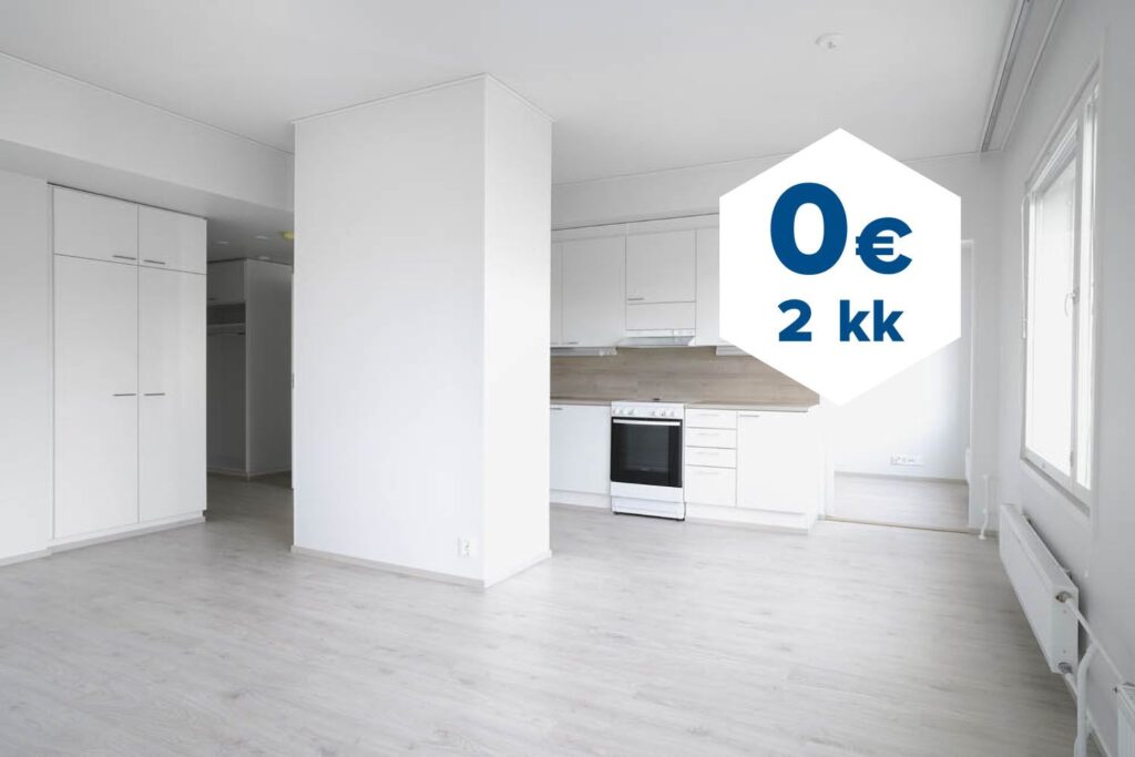 Tee sopimus nyt – saat kahden ensimmäisen kuukauden käyttövastikkeen hintaan 0 €. Uuden asukkaan edut ovat voimassa 15.4.2026 mennessä tehtyihin sopimuksiin ja koskevat heti vapaita asuntoja. Vesi- ja autopaikkamaksut normaalisti. Edellyttää 12 kuukauden asumista. Lue lisää kampanjaedusta.