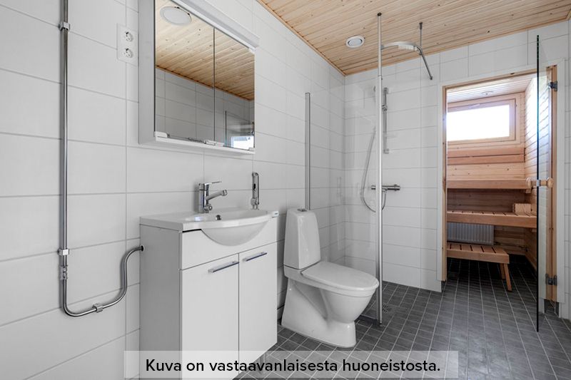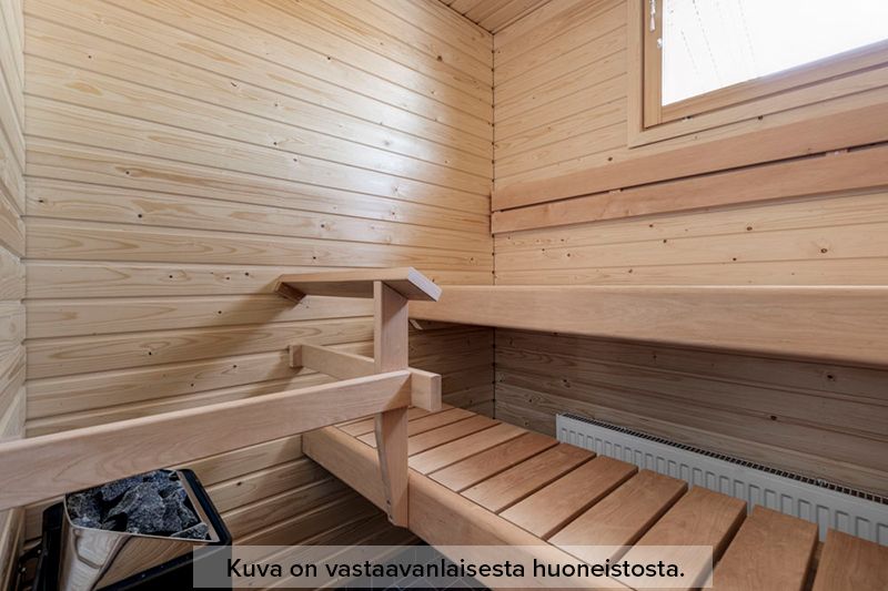 Tämä kaksitasoisen rivitalon ensimmäisessä kerroksessa keittiö aukeaa avaraan olohuoneeseen, josta on näkymä omalle terassille. Alakerran suureen vaatehuoneeseen saa tavarat hyvin järjestykseen ja lisää säilytystilaa löytyy vielä yläkerran makuuhuoneistakin. Yläkerrassa on myös tilava kylpyhuone, sekä oma sauna. Kesäisin voi grillailla tai vaikka lueskella aurinkoisella omalla terassilla. Syksyn ja talven viilenevissä illoissa on mukava lämmittää oma sauna ja hengähtää hetki.