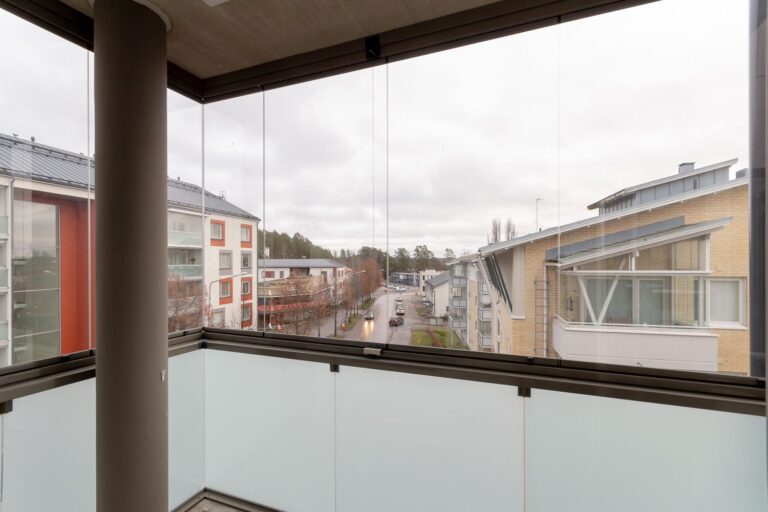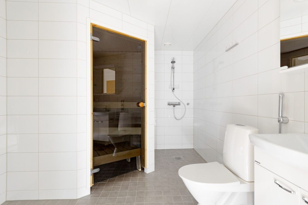 Kompakti kolmio toimivalla pohjaratkaisulla. Makuuhuoneet ovat olohuoneen eri puolilla, jolloin tämä asunto sopii moneen eri elämänvaiheeseen. Oman saunan lämmöstä pääset nauttimaan silloin kun tahdot, ja saunasta pääset vilvoittelemaan parvekkeelle. Kuvat vastaavasta asunnosta.