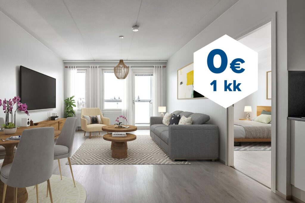 Tee sopimus nyt – saat ensimmäisen kuukauden käyttövastikkeen hintaan 0 €. Etu on voimassa 15.4.2026 saakka ja koskee uusia asiakkaita. Vesi- ja autopaikkamaksut normaalisti.