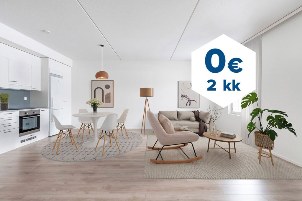 Tee sopimus nyt – saat kahden ensimmäisen kuukauden käyttövastikkeen hintaan 0 € ja vakuusmaksun 250 €. Uuden asukkaan edut ovat voimassa 15.4.2026 mennessä tehtyihin sopimuksiin ja koskevat heti vapaita asuntoja. Vesi- ja autopaikkamaksut normaalisti. Edellyttää 12 kuukauden asumista. Lue lisää kampanjaedusta.