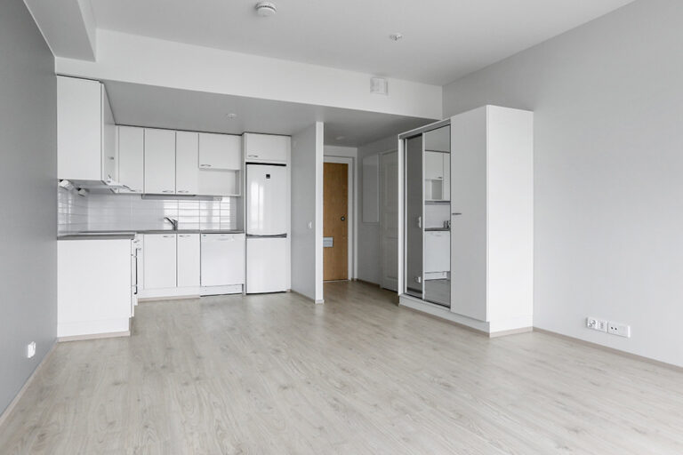 Tilava kaksio toimivalla pohjaratkaisulla toiseksi ylimmäisessä kerroksessa. Asunnossa on kaikki tarvittava: oma sauna, lasitettu parveke sekä makuuhuoneen yhteydessä sijaitseva tilava vaatehuone. Keittiö ja olohuone muodostavat avaran ja yhtenäisen oleskelutilan. Ilmoituksen kuvat ovat kohteen vastaavasta asunnosta.