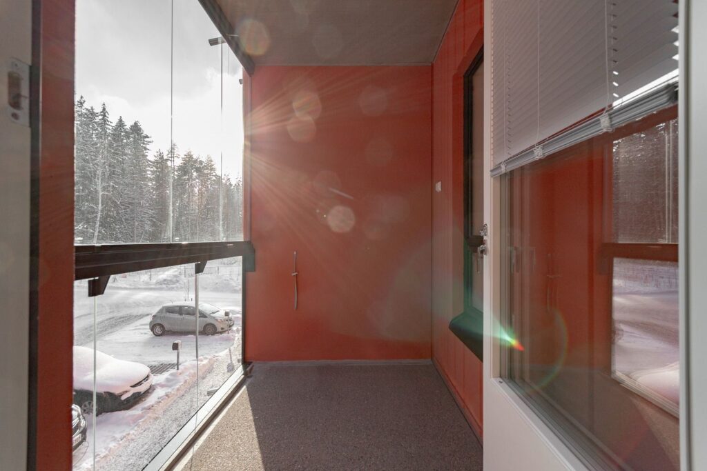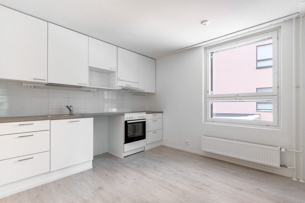 Keittiö on erillinen, mutta avautuu sujuvasti olohuoneeseen, luoden yhtenäisen tilan, joka sopii niin rentoutumiseen kuin vieraiden viihdyttämiseen. Tilava lasitettu parveke tuo lisää tilan tuntua ja mahdollistaa ulkoilun ja auringosta nauttimisen ympäri vuoden.