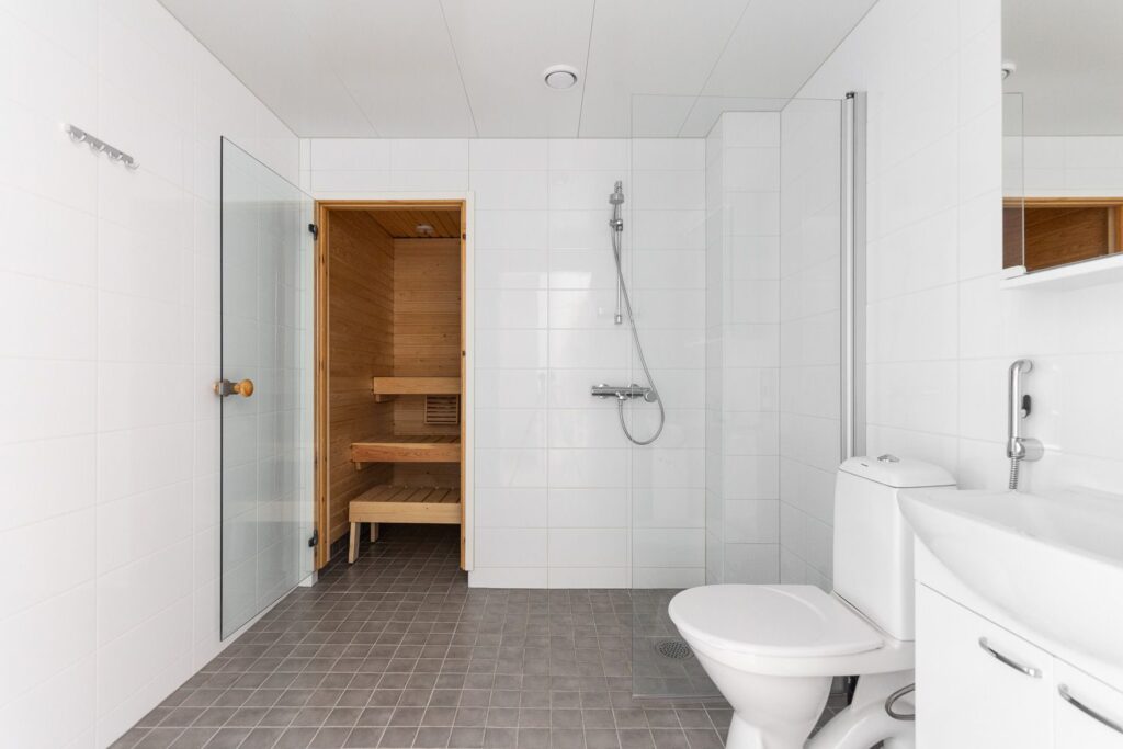 Molemmat makuuhuoneet ovat käytännöllisiä ja viihtyisiä, ja kylpyhuoneen yhteydessä oleva sauna tarjoaa täydellisen paikan rentoutua pitkän päivän päätteeksi.