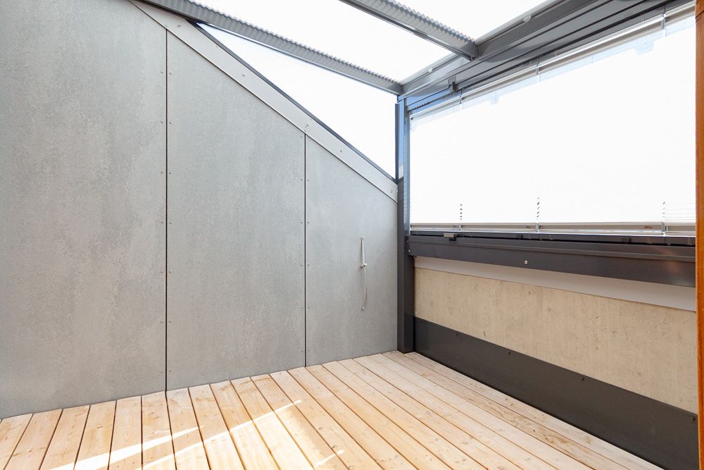 Talon ylimmässä kerroksessa on upeat saunatilat. Suihkutilasta ja saunatuvasta pääsee vilvoittelemaan katetulle terassille. Saunatuvan yhteydessä on asukkaille yhteiskäyttöön tarkoitettu kasvihuone. Talon katolla on aurinkopaneeleita tuottamassa energiaa kiinteistön käyttöön.