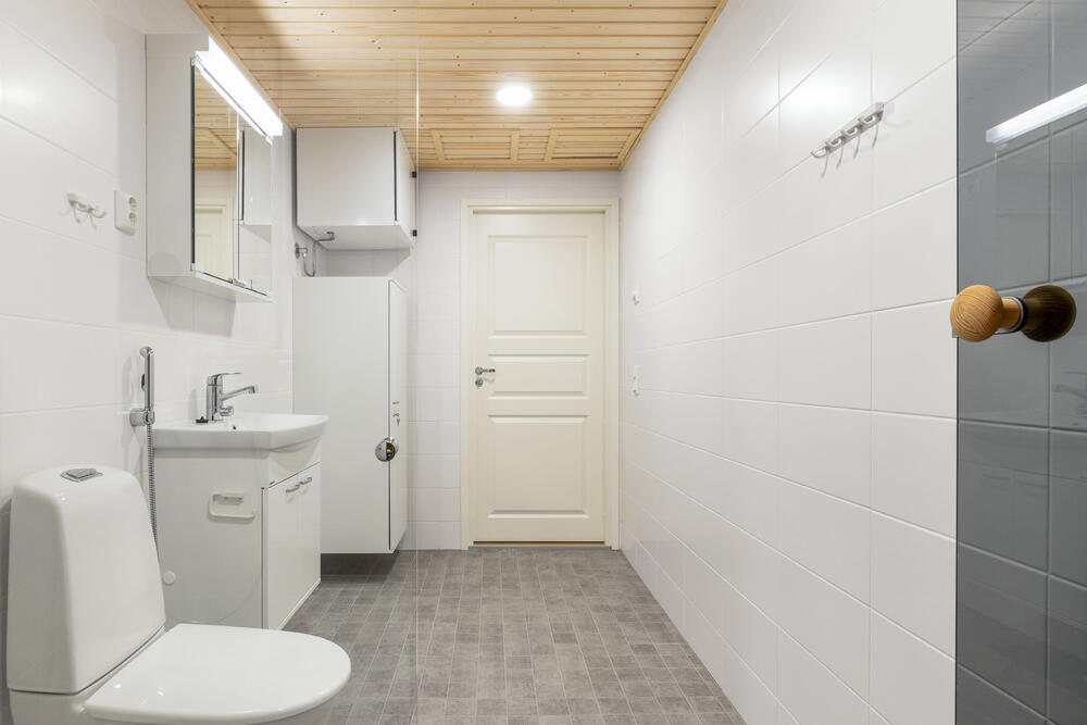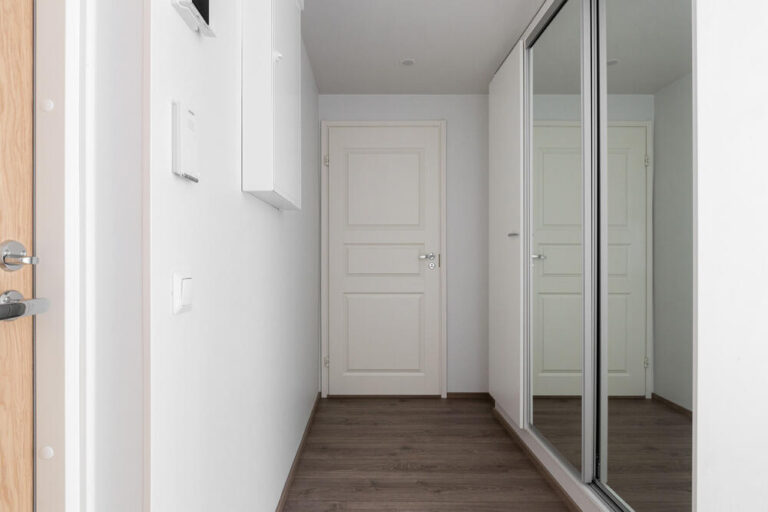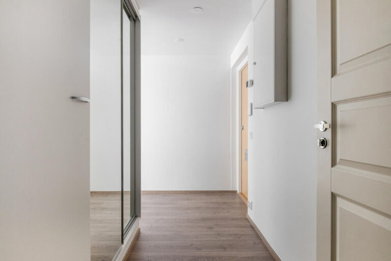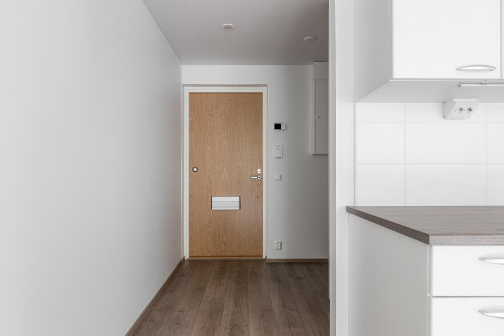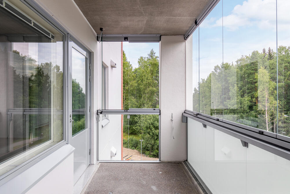 Asunnossa tilava eteinen, josta käynti kylpyhuoneeseen ja saunaan. Huoneistossa lasitettu parveke itään, kulku parvekkeelle olohuoneesta. Kuvat ovat vastaavanlaisesta eri kerroksen asunnosta. Huoneiston pintojen värit voivat vaihdella.