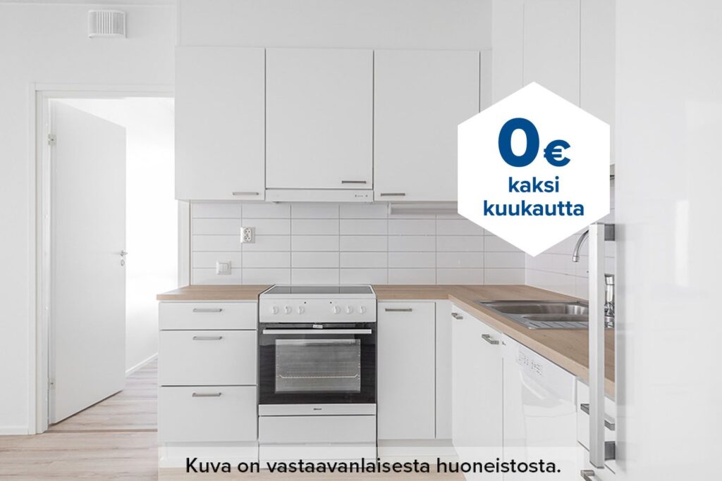 Tee sopimus nyt – saat kahden ensimmäisen kuukauden käyttövastikkeen hintaan 0 € ja vakuusmaksun 250 €. Edut ovat voimassa 15.4.2026 saakka ja koskevat vain uusia asiakkaita. Vesi- ja autopaikkamaksut normaalisti. Edellyttää 12 kuukauden asumista.