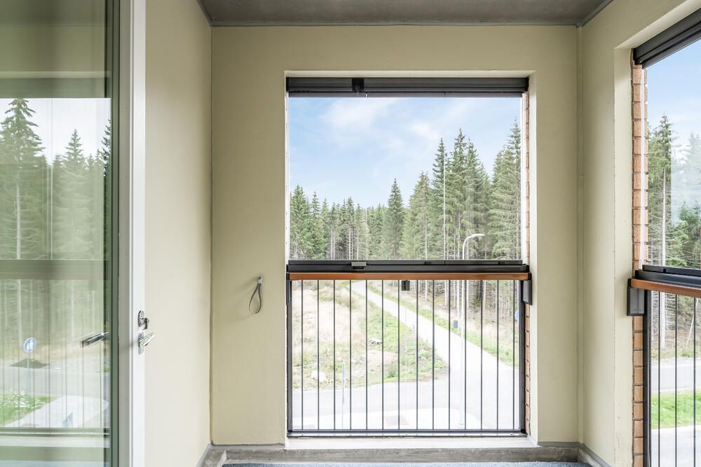 Saunallinen toisen kerroksen kulmakaksio omalla lasitetulla parvekkeella. Keittiö ja olohuone ovat yhtenäistä tilaa. Keittiössä on jääkaappi/pakastin ja tilavaraus astianpesukoneelle. Lisää säilytystilaa tuo makuuhuoneen yhteydessä oleva vaatehuone. Parveke ja ikkunat suuntaavat kahteen eri ilmansuuntaan Rissonkadulle ja Hinkanpolulle eli koilliseen ja kaakkoon.