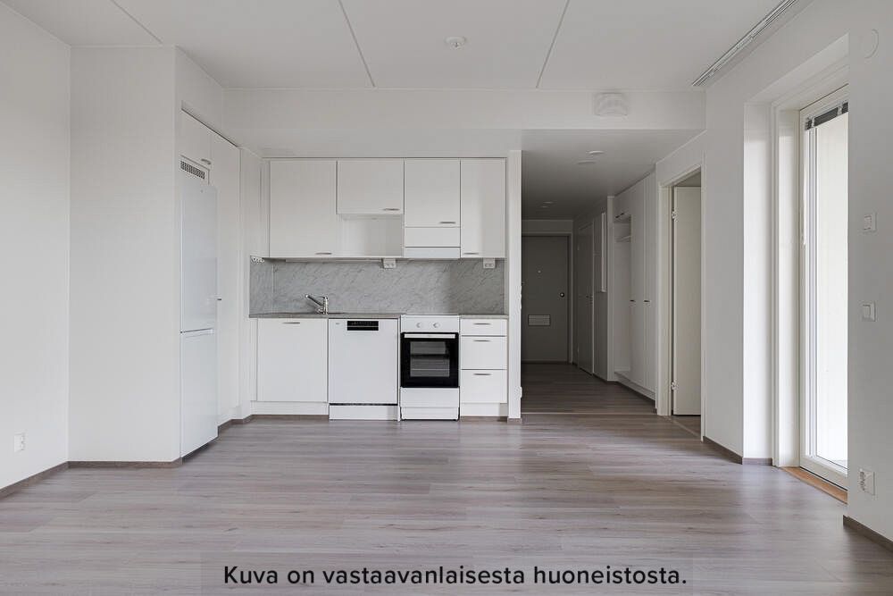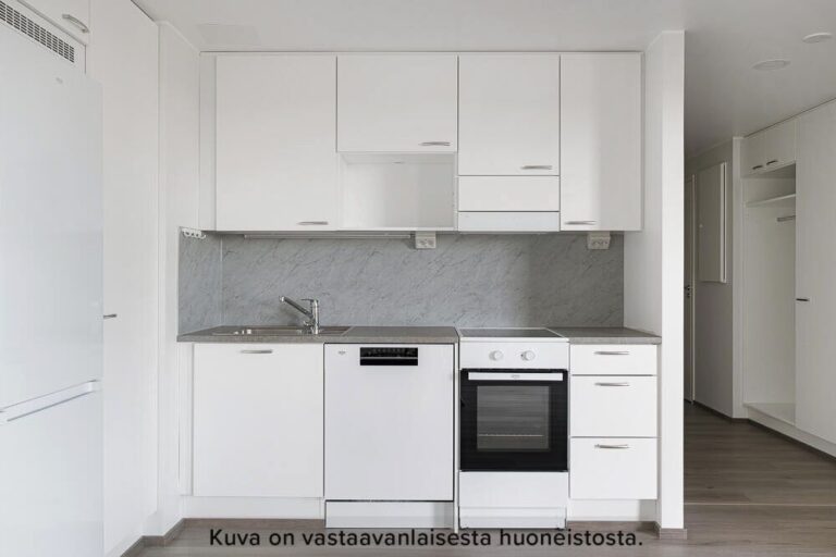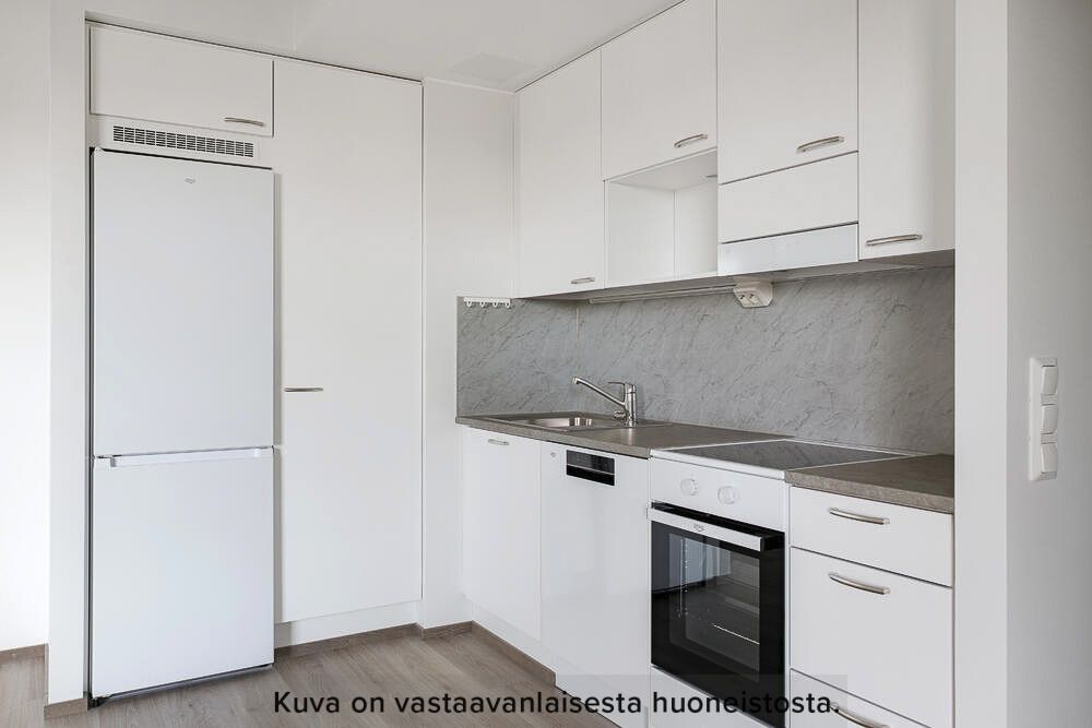 Tämä asunto on suunniteltu tyylikkäästi ja huolella, jotta voit nauttia jokaisesta hetkestä. Asunnon neutraalinsävyiset maalatut seinät ja laminaattilattiat luovat hyvän pohjan sisustaa asunto omantyyliseksi. Keittiössä on induktiokeittotaso, jääkaappipakastin sekä tilavaraus astianpesukoneelle ja mikrolle.