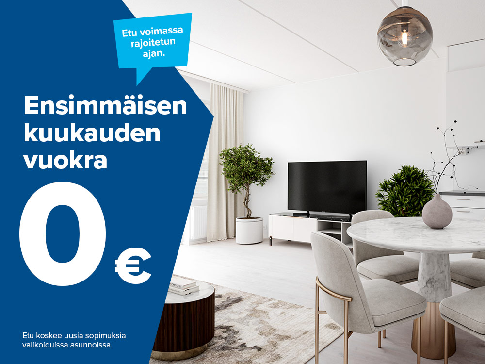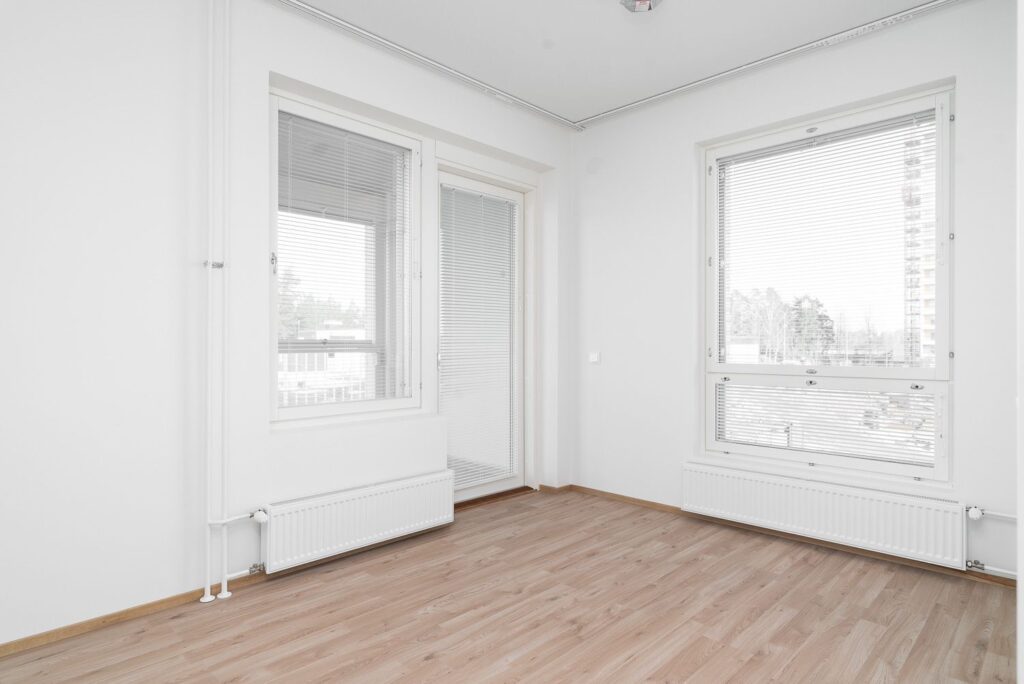 Kolmannen kerroksen tilava neljän huoneen vuokra-asunto, jossa lisätilaa tuo lasitettu parveke. Asunnossa on kylpyhuoneen lisäksi erillinen wc. Kylpyhuoneen ja erillis-WC:n seinät ja lattia ovat laatoitettuja. Kylpyhuoneessa on pyykkikomero sekä tilavaraus 60 cm leveälle pyykinpesukoneelle ja kuivausrummulle. Keittiöissä ala- ja yläkaappien välitila on laminaattia. Liedet ovat valkoisia, keraamisella keittotasolla ja uunilla varustettuja lattialiesiä. Neljän huoneen asunnoissa on kaksi jää-pakastinkaappia. Kaikissa asunnoissa on astianpesukoneet. Huoneistossa on kylmän ja lämpimän käyttöveden kulutusmittarit sekä näyttötaulu, josta voi seurata oman huoneistonsa vedenkulutusta. Neutraalien pintamateriaalien vuoksi asunto on helppo sisustaa omannäköiseksi. Kuvat ovat vastaavanlaisesta asunnosta.