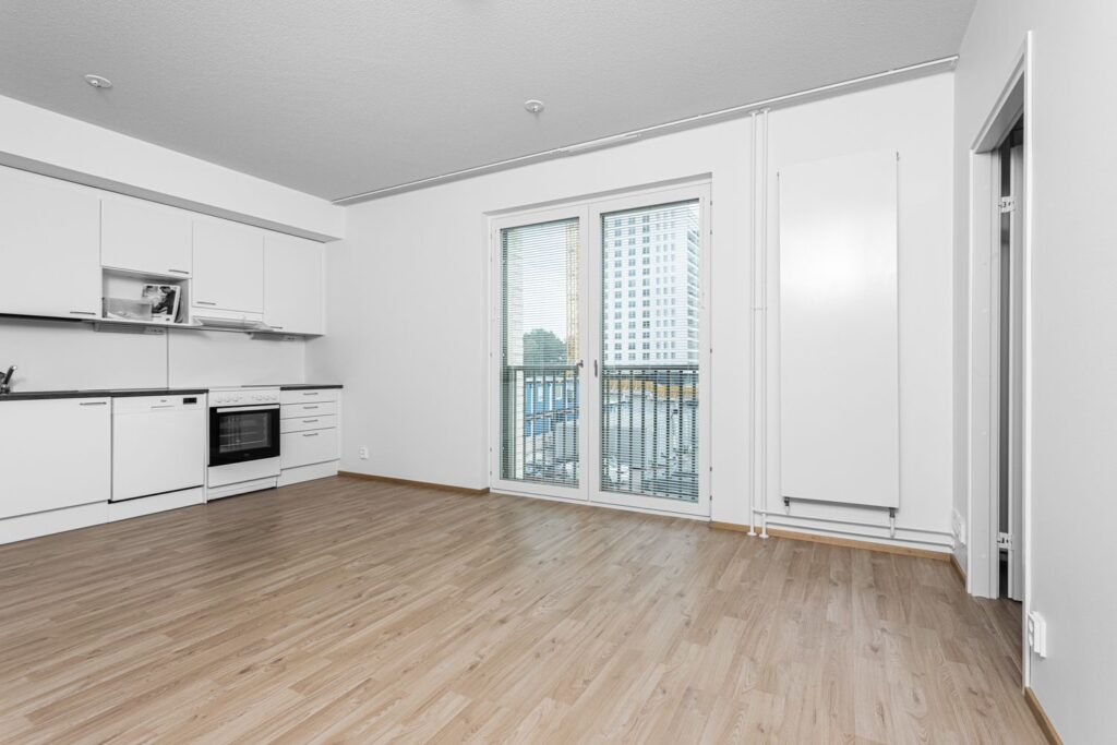 Kuudennessa kerroksessa sijaitseva vuokrakaksio, jossa on ranskalainen parveke. Asunnon eteisestä löytyy säilytystilaa ja kylpyhuone. Kylpyhuoneessa on pyykkikomero, tilavaraus 60 cm leveälle pyykinpesukoneelle ja kuivausrummulle sekä pyykinpesukoneliitännät ja pistorasiat valmiina. Kylpyhuoneen seinät ja lattia ovat laatoitettuja. Avokeittiö avautuu olohuoneen yhteyteen. Keittiöissä ala- ja yläkaappien välitila on laminaattia. Liedet ovat valkoisia, keraamisella keittotasolla ja uunilla varustettuja lattialiesiä. Keittiössä on yksi jääkaappipakastin sekä astianpesukone. Asunnossa on neutraalit pintamateriaalit, joten voit helposti sisustaa kodistasi juuri sinun näköisen. Huoneistossa on kylmän ja lämpimän käyttöveden kulutusmittarit sekä näyttötaulu, josta voi seurata oman huoneistonsa vedenkulutusta. Kuvat vastaavasta asunnosta.