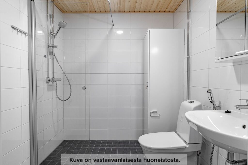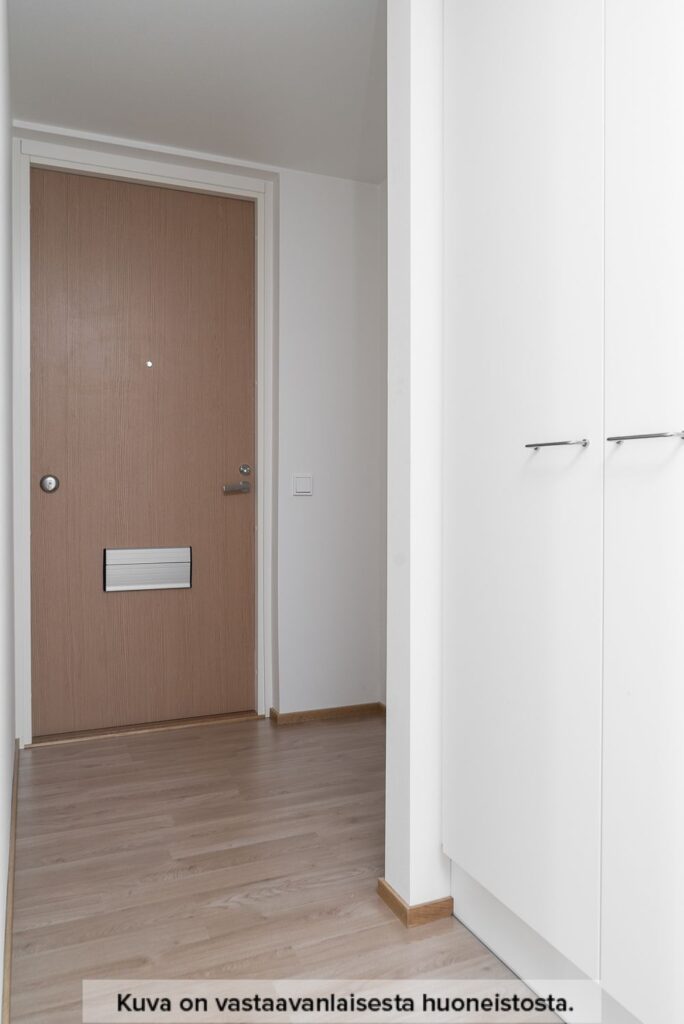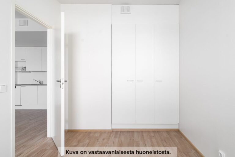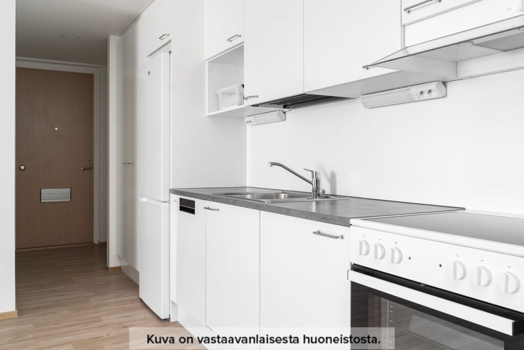 Toimivaksi ja viihtyisäksi kokonaisuudeksi suunniteltu kaksio. Asuntoon astutaan sisään eteisen kautta, jonka yhteydestä löytyy säilytystilaa. Asunnon avokeittiö avautuu olohuoneen yhteyteen. Keittiössä on jääkaappipakastin, valkoinen 60 cm leveä astianpesukone, 60 cm leveä tilavaraus mikroaaltouunille sekä keraaminen lattialiesi. Kylpyhuoneessa on pyykkikomero, tilavaraukset 60 cm leveälle pyykinpesukoneelle ja kuivausrummulle, sekä pyykinpesukoneliitännät ja pistorasiat valmiina. Makuuhuoneeseen ja asunnon viihtyisälle lasitetulle parvekkeelle kuljetaan olohuoneen kautta.