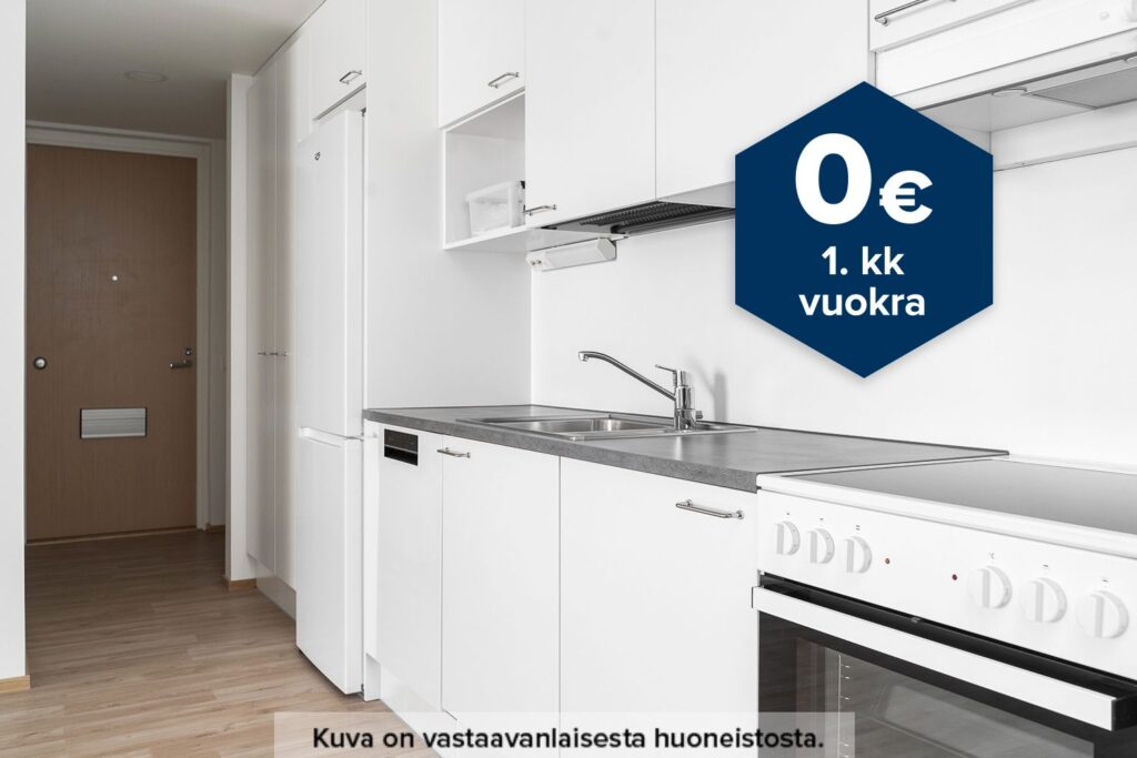 Tee sopimus nyt – saat ensimmäisen kuukauden vuokran hintaan 0 €. Etu on voimassa toistaiseksi ja koskee vain uusia asiakkaita. Vesi- ja autopaikkamaksut normaalisti. Edellyttää 6 kuukauden asumista.