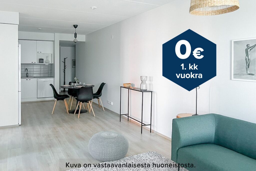 Tee sopimus nyt – saat ensimmäisen kuukauden vuokran hintaan 0 €. Etu on voimassa toistaiseksi ja koskee vain uusia asiakkaita. Vesi- ja autopaikkamaksut normaalisti. Edellyttää 6 kuukauden asumista.