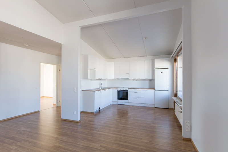 Asunnon korkea kattoratkaisu tuo valoa ja avaruutta olohuoneeseen. Keittiö avautuu luontevasti olohuoneeseen luoden viihtyisän yhteisen tilan seurustella perheen tai vieraiden kanssa ruoanlaiton yhteydessä. Asunnossa on paljon säilytystilaa. Keittiössä on hyvin kaappi- ja laskutilaa ja tilavissa makuuhuoneissa on kaappitilaa myös runsaasti. Asukkaalla on lisäksi käytössään lämmin irtaimistovarasto. Suojaisalta parvekkeelta on näkymä rauhaisalle sisäpihalle..