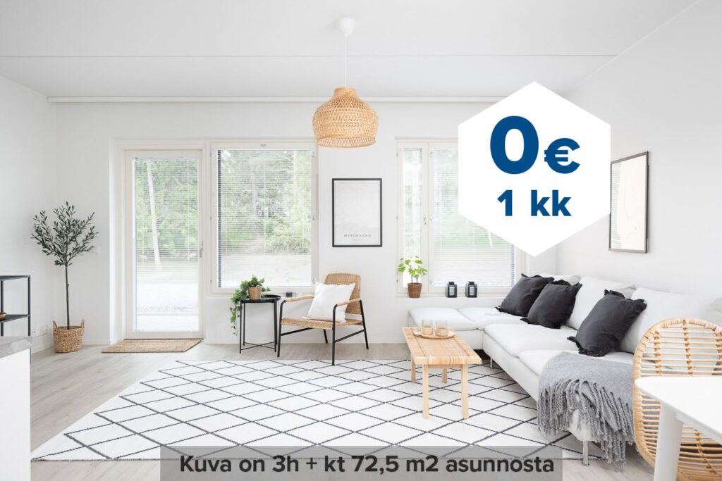 Tee sopimus nyt – saat ensimmäisen kuukauden käyttövastikkeen hintaan 0 €. Etu on voimassa 15.4.2026 saakka ja koskee uusia asiakkaita. Vesi- ja autopaikkamaksut normaalisti.