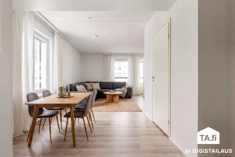Vapaana tilava, valoisa ja avara kolmio. Huoneisto tarjoaa loistavat puitteet moderniin ja mukavaan asumiseen. Asunto on kulmahuoneisto, jossa on ikkunoita kahteen ilmansuuntaan. Asunnossa on kaksi vaatehuonetta, oma sauna ja lasitettu parveke. Hyvin suunniteltu pohjaratkaisu tekee tästä kodista täydellisen niin pariskunnille kuin pienille perheille. Erillinen wc kylpyhuoneen lisäksi lisää asumismukavuutta. Asunnon keittiö ja olohuone ovat isoa yhtenäistä avaraa tilaa, josta kuljetaan myös parvekkeelle. Keittiön varustukseen kuuluu lattialiesi sekä jääkaappipakastin. Astianpesukoneelle ja mikroaaltouunille on tilavaraukset. Laatoitetussa kylpyhuoneessa on peilikaappi ja suihkuseinä sekä tilavaraus pyykinpesukoneelle ja kuivausrummulle. Asunnon kuvat ovat vastaavanlaisesta eri kerroksen asunnosta. Pintamateriaalien sävyt voivat vaihdella.