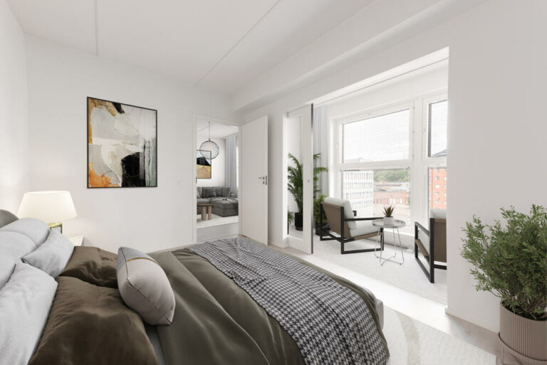 Neljännen kerroksen tilava kaksio. Parvekkeen sijaan tässä kodissa on liukuovilla varustettu viherhuone. Käynti viherhuoneeseen on makuuhuoneesta. Makuuhuoneen yhteydessä on myös vaatehuone. Omaa saunaa tässä asunnossa ei ole, mutta löylyistä pääsee halutessaan nauttimaan varaamalla vuoron ullakkokerroksessa sijaitsevasta talosaunasta.