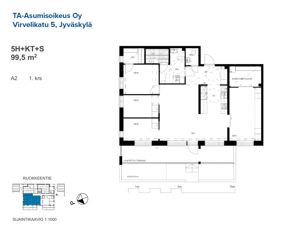 Tässä Palokan uudiskohteessa on tarjolla harvinaisempi, 99,5 m²:n asumisoikeusviisiö (5h+kt+s) talon alimmassa kerroksessa. Sijainti on arkea helpottava: alueelta on sujuvat yhteydet ja palvelut ovat kätevästi saavutettavissa.