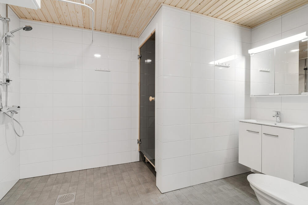 Asumismukavuutta lisäävät oma sauna sekä erillinen wc. Säilytystilaa on reilusti vaatehuoneen ansiosta, ja lisäksi käytössä on tilava monitoimitila, joka sopii esimerkiksi etätyöpisteeksi, leikkitilaksi tai rauhalliseksi oleskelunurkkaukseksi.