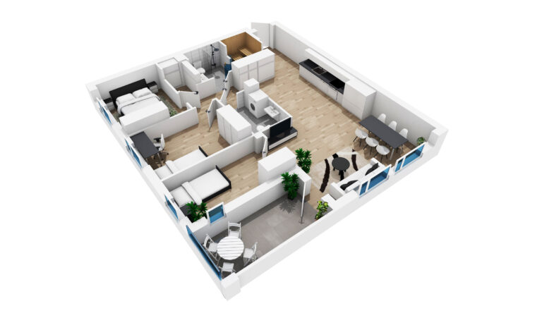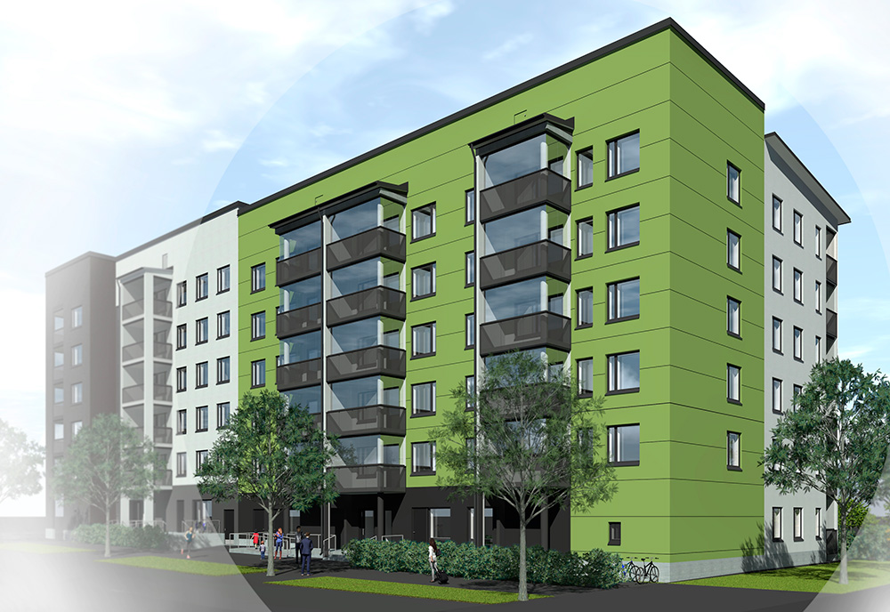 Kodikas ylimmän kerroksen neliö. Asunnon toimiva avokeittiö mukautuu käyttäjän elämäntilanteisiin ja kokoaa perheen ja ystävät yhteen. Makuuhuoneissa on runsaasti kaappitilaa, ja lisäksi asunnossa on erillinen vaatehuone. Asumismukavuutta lisäävät iso lasitettu parveke, kaksi erillistä wc:tä sekä oma sauna. Tässä kulmahuoneistossa ikkunannäkymät ovat suojaisalle sisä- ja sivupihalle.