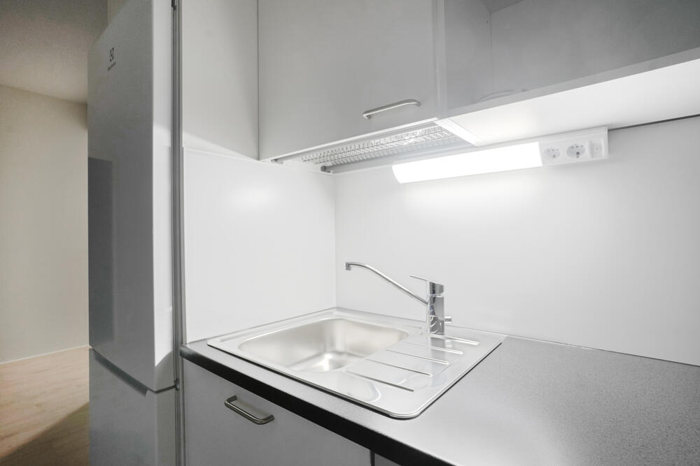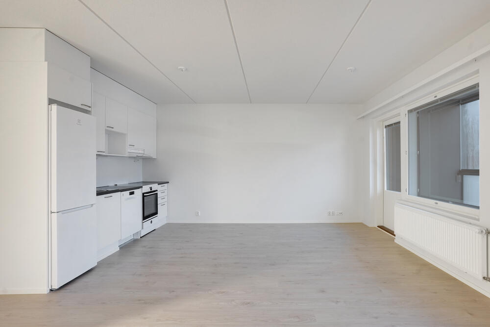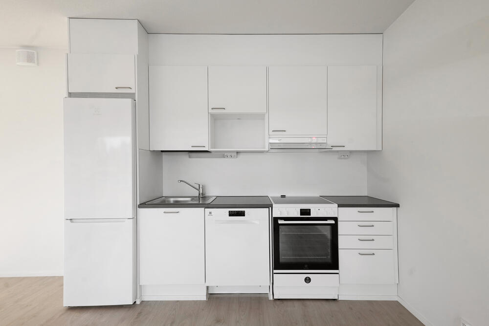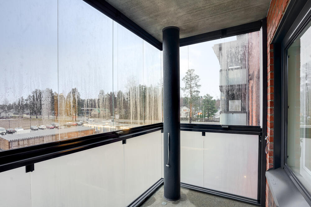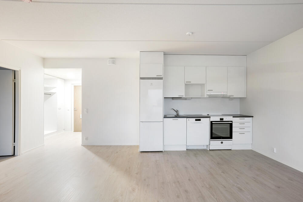 Kolmannen kerroksen kaksio odottaa uusia asukkaita. Tilava olohuone ja keittotila muodostavat avaran kokonaisuuden, joka sopii erinomaisesti sekä arkeen että yhdessäoloon. Lasitettu parveke tuo asuntoon lisää tilaa. Uudehkon talon modernit pintamateriaalit tekevät kodista raikkaan ja muuttovalmiin ja hissi tuo asumiseen helppoutta. Tämä asunto on mainio valinta sinulle, joka arvostat nykyaikaista asumista, avaria tiloja ja viihtyisää parveketta. Kuvat vastaavanlaisesta eri kerroksen asunnosta. Pintamateriaalit ja niiden sävyt voivat vaihdella.