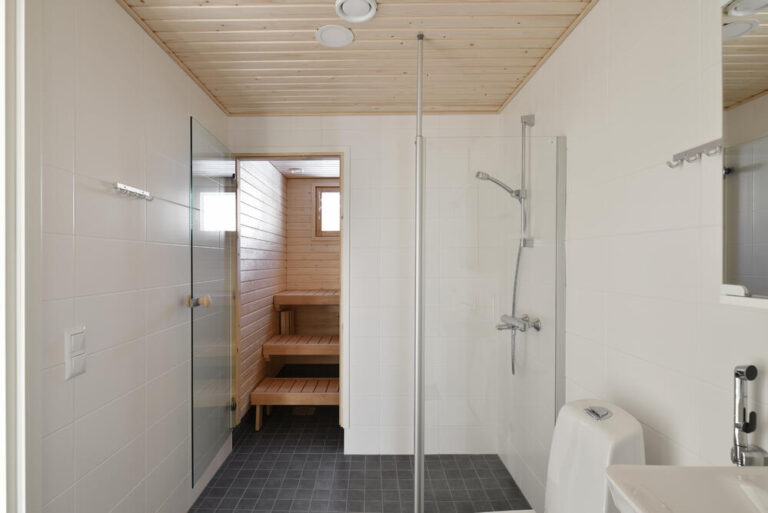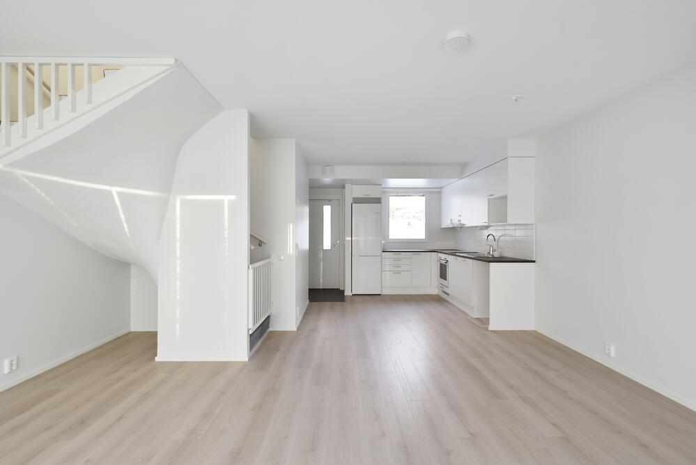 Alakerrassa on toimiva avokeittiö, joka avautuu luontevasti olohuoneeseen. Olohuoneesta käynti omalle takapihalle. Makuuhuoneet yläkerrassa omassa rauhassaan, toisen makuuhuoneen yhteydessä tilava vaatehuone ja ranskalainen parveke. Oma sauna ja tyylikäs laatoitettu pesuhuone.