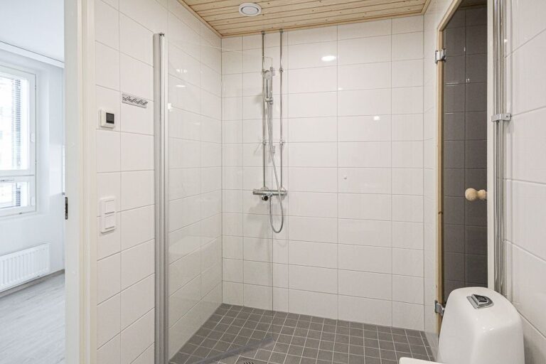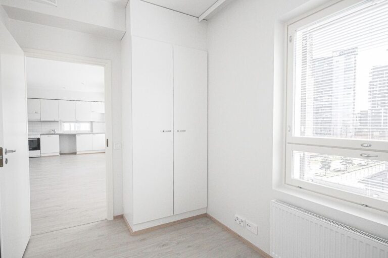 Talon päädyssä sijaitseva valoisa läpitalon nelikko, jossa on paljon ikkunoita ja näkymät avautuvat kolmeen ilmansuuntaan. Asunnossa on oma sauna, kaksi wc:tä ja yhdessä makuuhuoneista vaatehuone. Keittiö, ruokailutila ja olohuone ovat avointa yhtenäistä tilaa ja asunnolla on vain yksi seinänaapuri. Parveke on lasitettu ja lasitukseen on teetetty muutostyönä kaihtimet. Tälle asunnolle on vuokrattavissa pysäköintioikeus! Sisäkuvat ovat vastaavanlaisesta asunnosta (3.krs).