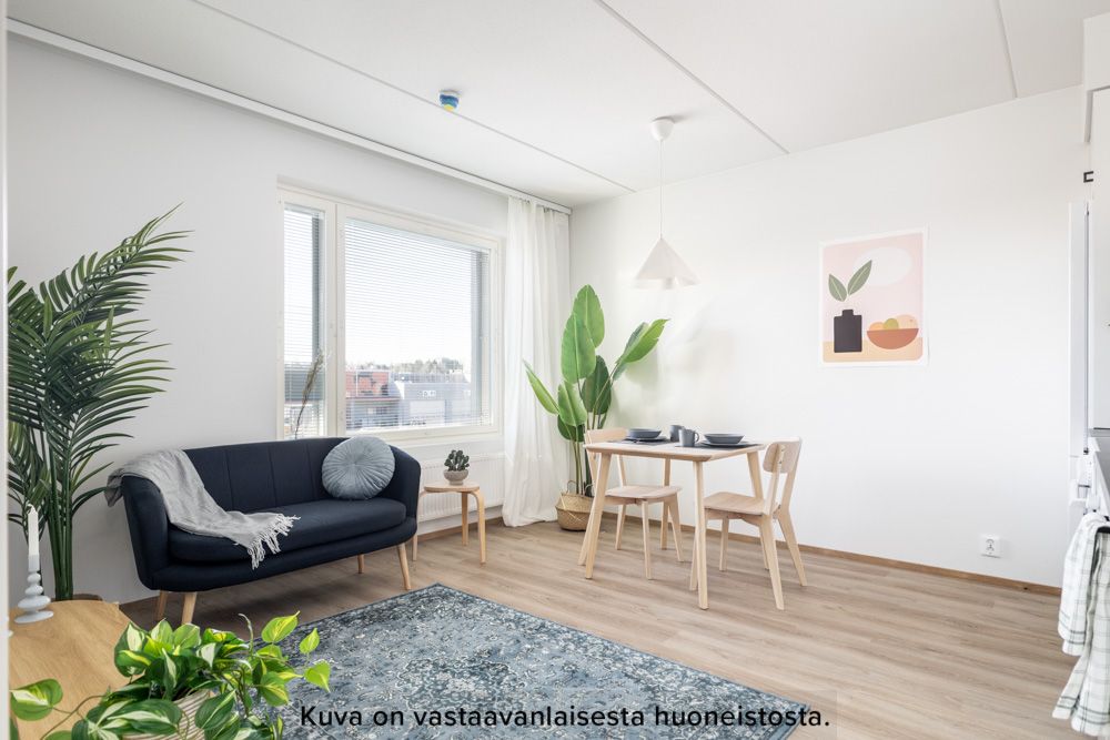 Viihtyisä ja hyvällä pohjaratkaisulla varustettu kaksio kolmannessa kerroksessa. Asunnosta löytyy tilava makuuhuone, josta aukeaa ikkuna ja valoisa lasikaiteinen parveke lounaaseen päin. Keittiö ja olohuone ovat yhdistetty yhdeksi isommaksi tilaksi, joka luo asuntoon tilantunnetta. Asunnon vaaleat ja neutraalit värit mahdollistavat monenlaiset sisustusratkaisut. Kompakti wc-kylpyhuone löytyy eteisen vierestä. Keittiöstä löytyy jo valmiiksi astianpesukone.