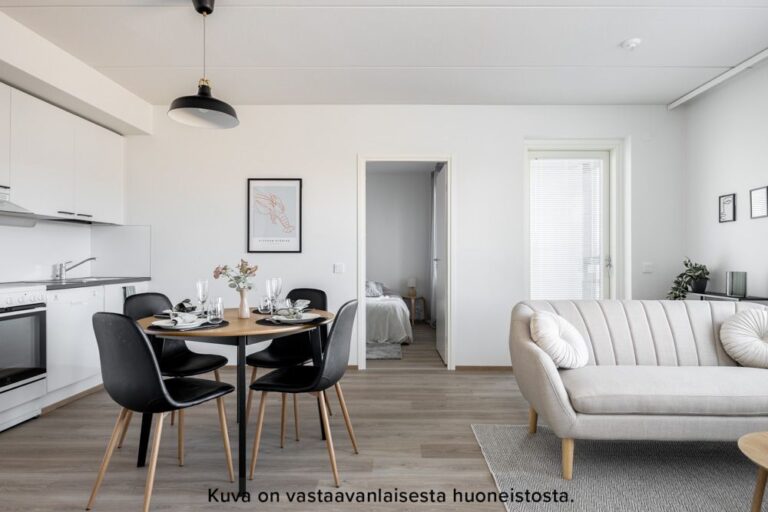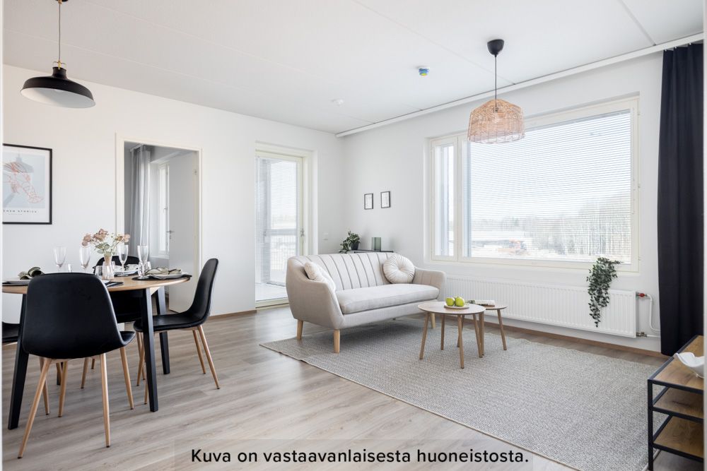 Viihtyisä kolmio kolmannessa kerroksessa. Vaaleiden neutraalien värien ja materiaalien avulla voit sisustaa asunnon juuri haluamallasi tavalla. Asunnossa on laminaattilattia, kylpyhuoneen seinissä ja lattioissa on keraamiset laatat. Kylpyhuoneessa on liitännät ja tilavaraukset pyykinpesukoneelle ja kuivausrummulle Asunnon mattavalkoiset sälekaihtimet lisäävät yksityisyyttä. Asunnon toimivassa avokeittiössä on lattialiesi, liesikupu, jääkaappipakastin ja astianpesukone sekä tilavaraus mikroaaltouunille. Olohuoneesta kuljetaan asunnon lasitetulle parvekkeelle, joka heijastaa valoa ja luo viihtyisyyttä koko asuntoon. Asunnon makuuhuoneista ja eteisestä löytyy valmiina säilytystilaa.
