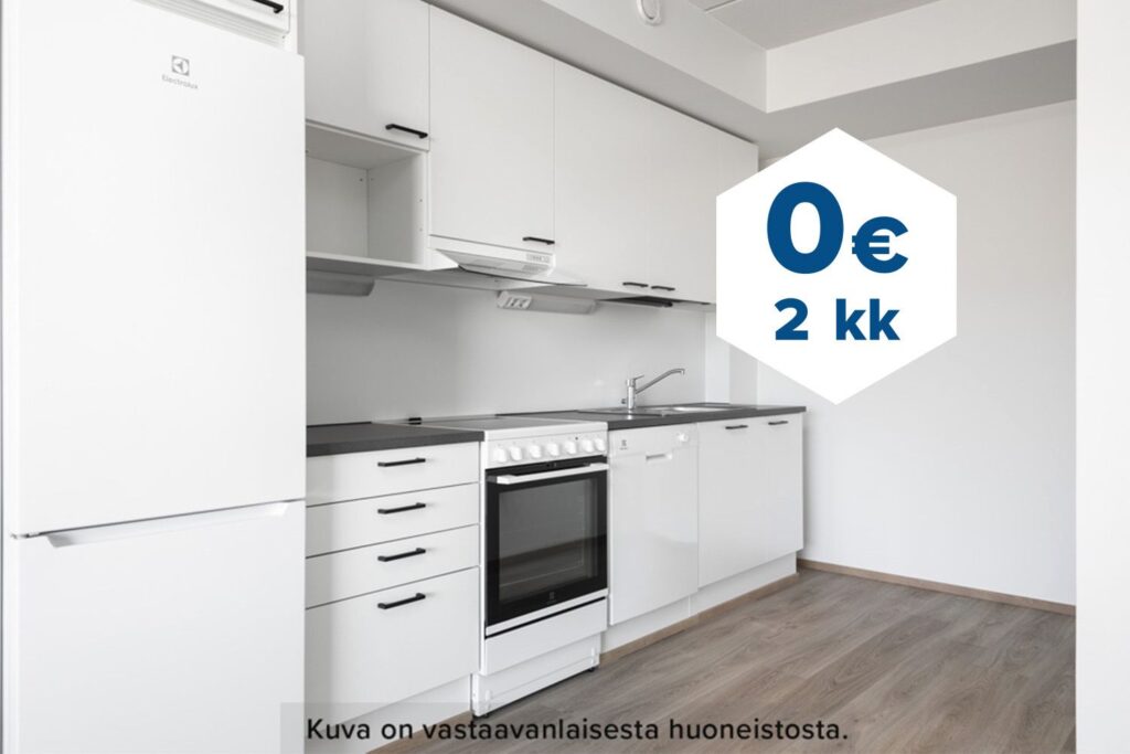 Tee sopimus nyt – saat kahden ensimmäisen kuukauden käyttövastikkeen hintaan 0 € ja vakuusmaksun 250 €. Uuden asukkaan edut ovat voimassa 15.4.2026 mennessä tehtyihin sopimuksiin ja koskevat heti vapaita asuntoja. Vesi- ja autopaikkamaksut normaalisti. Edellyttää 12 kuukauden asumista. Lue lisää kampanjaedusta.