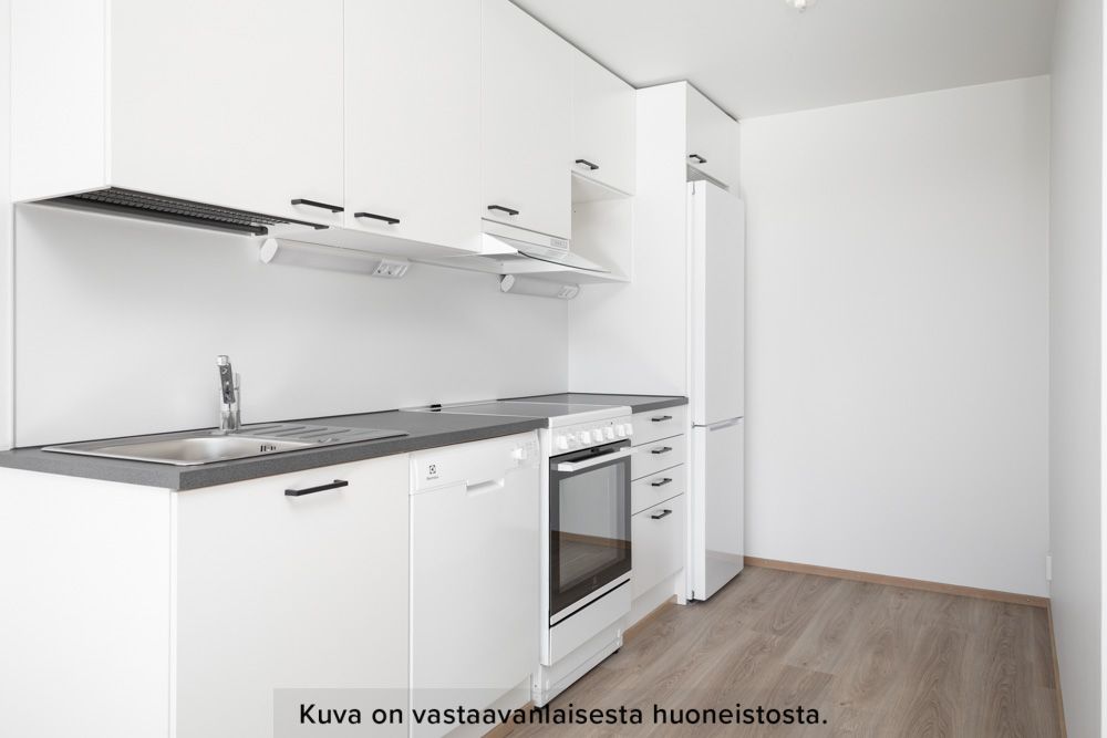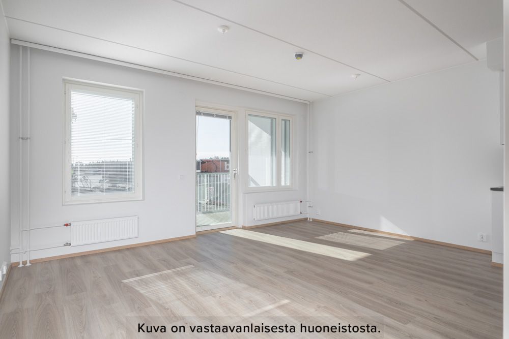 Yhden makuuhuoneen moderni kaksio kolmannessa kerroksessa. Tästä hyvin suunnitellusta kaksiosta löytyy astianpesukoneella varustettu avokeittiö, joka luo olohuoneen kanssa avaran yhtenäisen tilan. Olohuoneesta on pääsy lasikaiteiselle parvekkeelle sekä tilavaan makuuhuoneeseen. Kompaktissa kylpyhuoneessa on paikka pyykinpesukoneelle. Asunnon vaalea sävymaailma mahdollistaa kodin monipuolisen sisustamisen. Maantasokerroksessa sijaitsee yhteistilat, kuten irtainvarastot, ulkoiluväline- ja lastenvaunuvarasto, saunatila, pesula ja kuivaushuone. Pesuhuoneen yhteydessä sijaitsevalla lasitetulla parvekkeella voi vilvoitella sauna jälkeen.