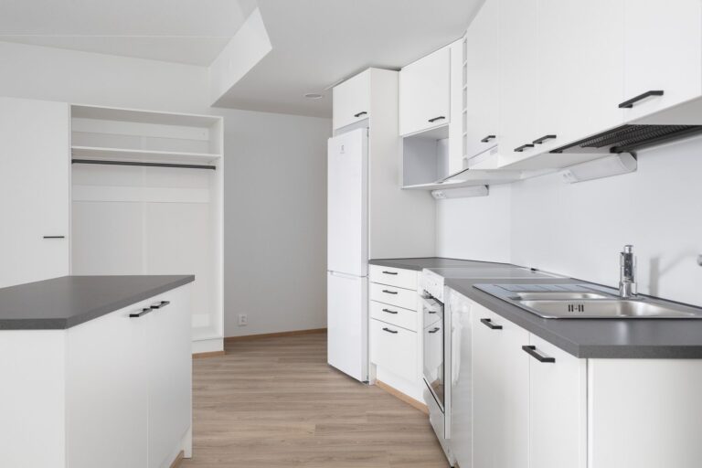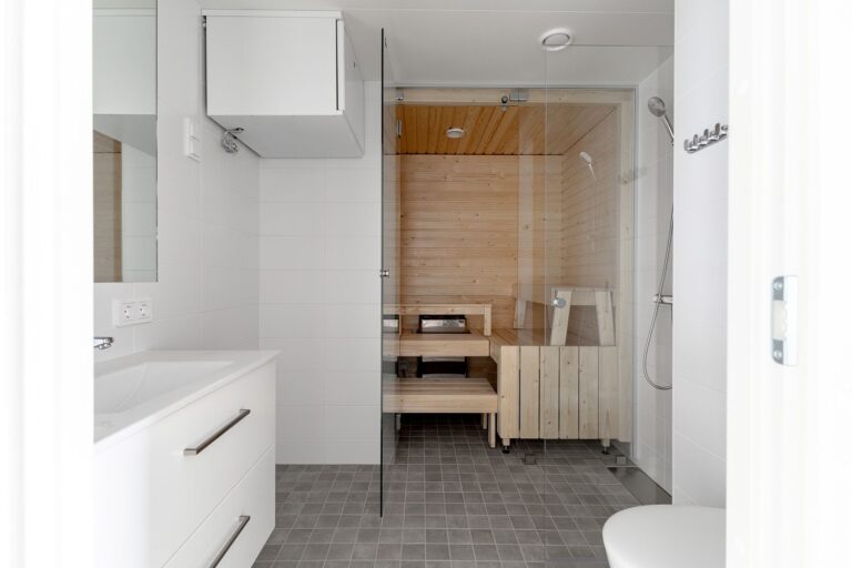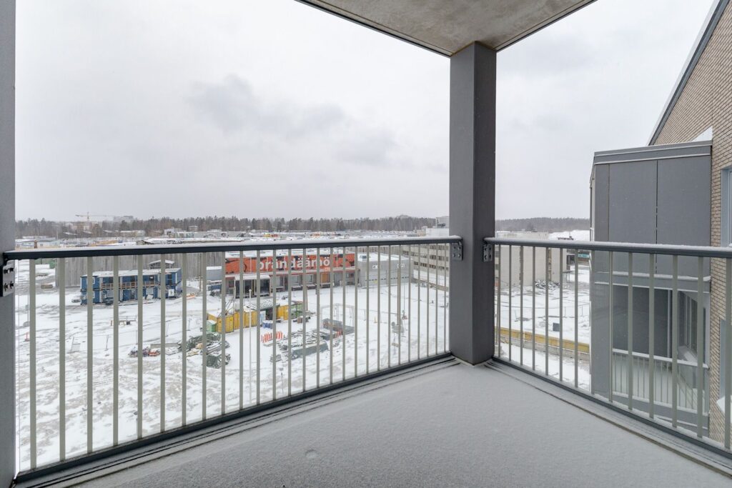 Ylimmän kerroksen kaksio kerrostalon kuudennessa kerroksessa yhdistää tilavan keittiön ja olohuoneen yhdeksi avoimeksi tilaksi. Makuuhuone on tilava ja sieltä on pääsy lasikaiteiselle parvekkeelle, joka luo mukavan tilantunteen. Asunnossa on kompakti kylpyhuone sekä oma sauna, jossa voi rentoutua milloin tahansa. Kaksi lounaaseen avautuvaa ikkunaa tuovat runsaasti luonnonvaloa kotiin. Vaaleat ja neutraalit sävyt mahdollistavat monenlaiset sisustusratkaisut. Keittiössä on valmiina astianpesukone ja kylpyhuoneessa on tilavaraus pyykinpesukoneelle. Maantasokerroksessa sijaitsee yhteistilat, kuten irtainvarastot, ulkoiluväline- ja lastenvaunuvarasto, saunatila, pesula ja kuivaushuone.