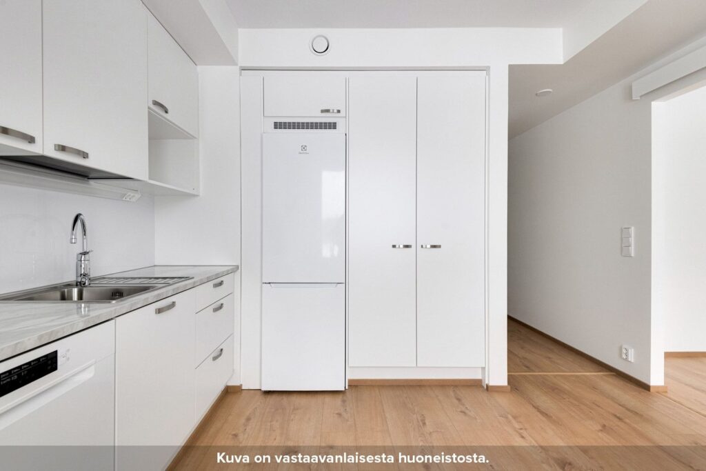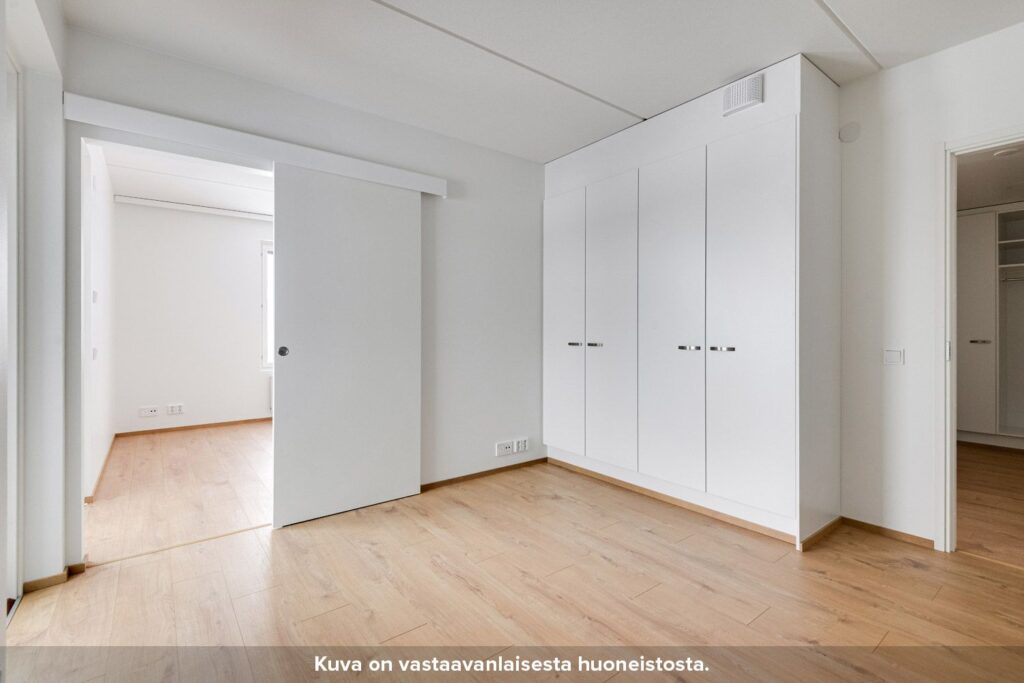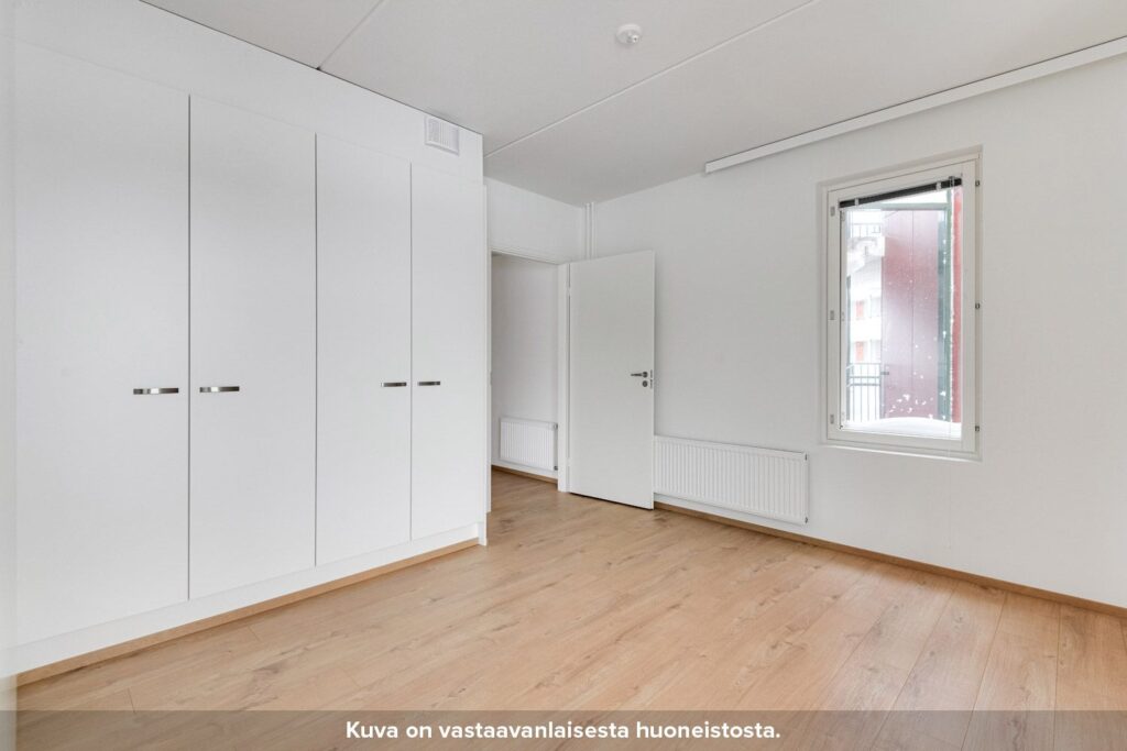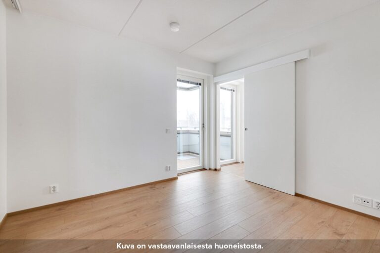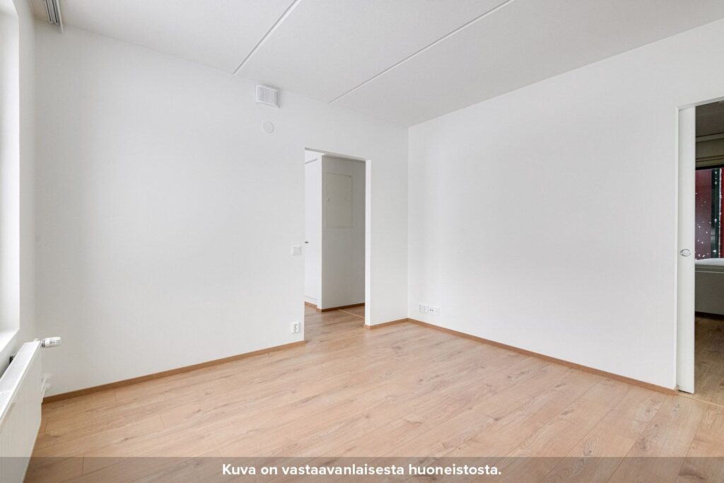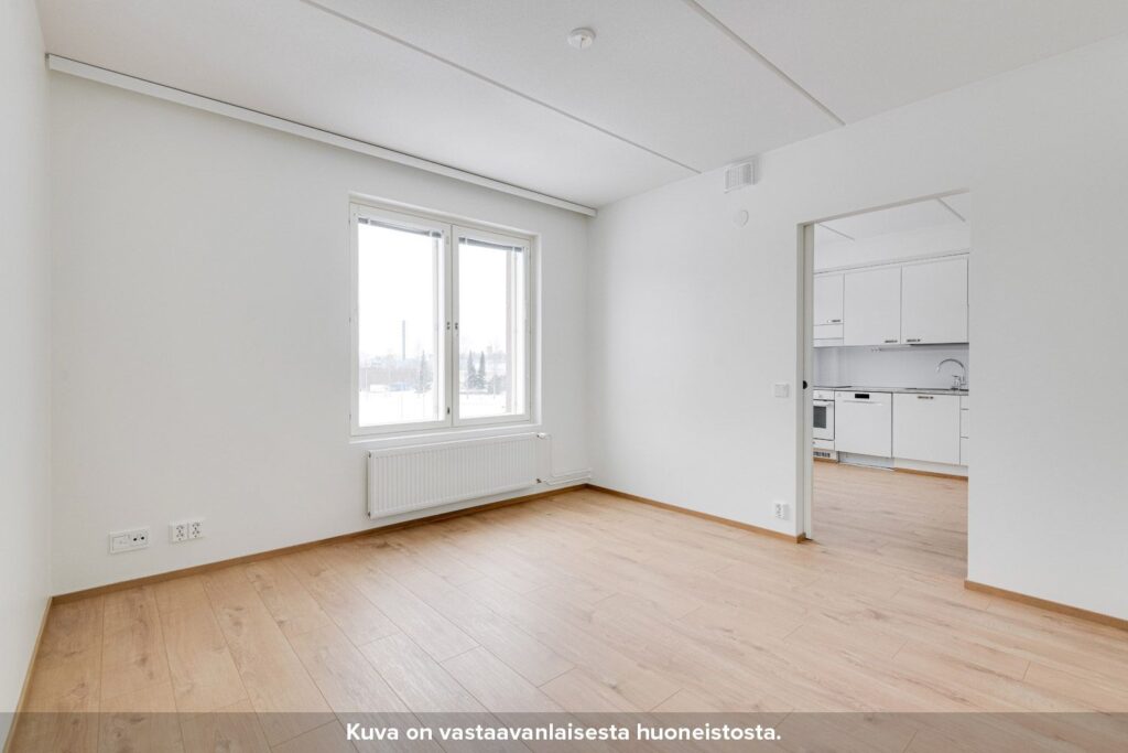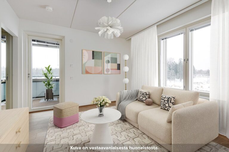 Olohuone on sijoitettu erilliseen tilaan, jonne pääsee keittiöstä sekä makuuhuoneesta liukuovien kautta. Keittiön ja olohuoneen pohjaratkaisu mahdollistaa sen, että asunto sopii hyvin myös esimerkiksi kämppisasumiseen. Asunnon tilavassa makuuhuoneessa on valmiina säilytystilaa. Kompaktille lasitetulle parvekkeelle pääsee kulkemaan niin olohuoneesta kuin makuuhuoneestakin.