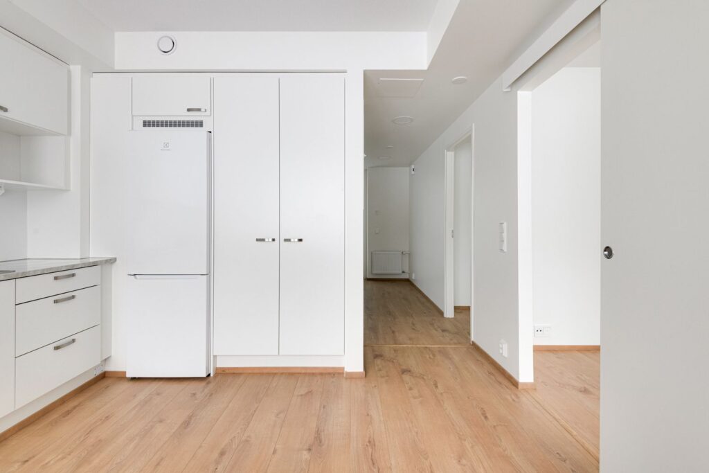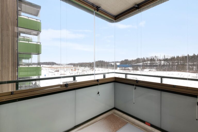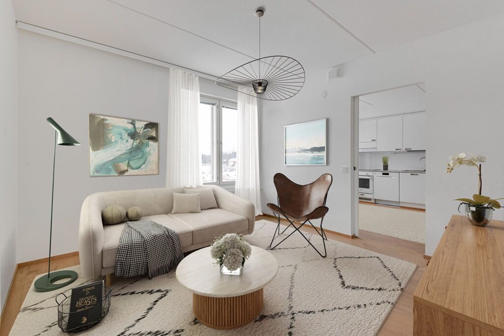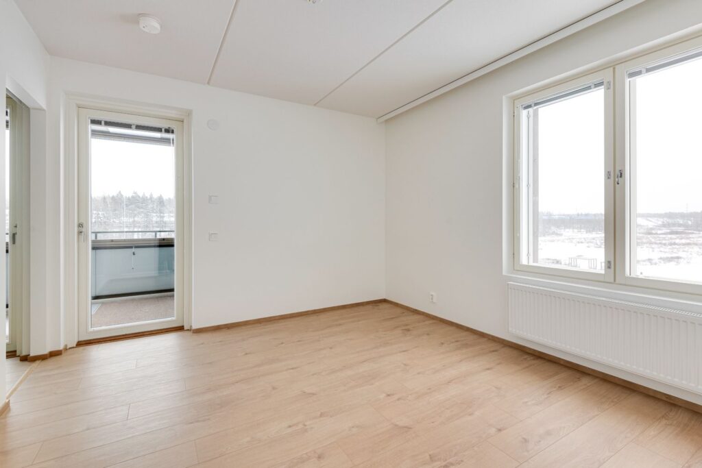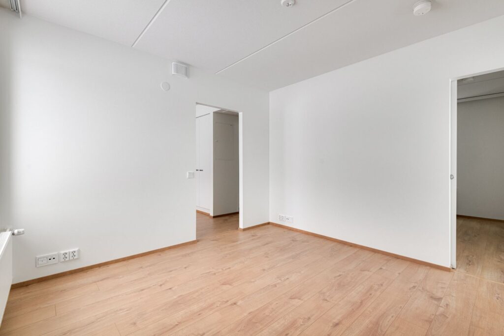 Olohuone on sijoitettu erilliseen tilaan, jonne pääsee keittiöstä sekä makuuhuoneesta liukuovien kautta. Keittiön ja olohuoneen pohjaratkaisu mahdollistaa sen, että asunto sopii hyvin myös esimerkiksi kämppisasumiseen. Asunnon tilavassa makuuhuoneessa on valmiina säilytystilaa. Asunnon kompaktille lasitetulle parvekkeelle pääsee kulkemaan niin olohuoneesta kuin makuuhuoneestakin.