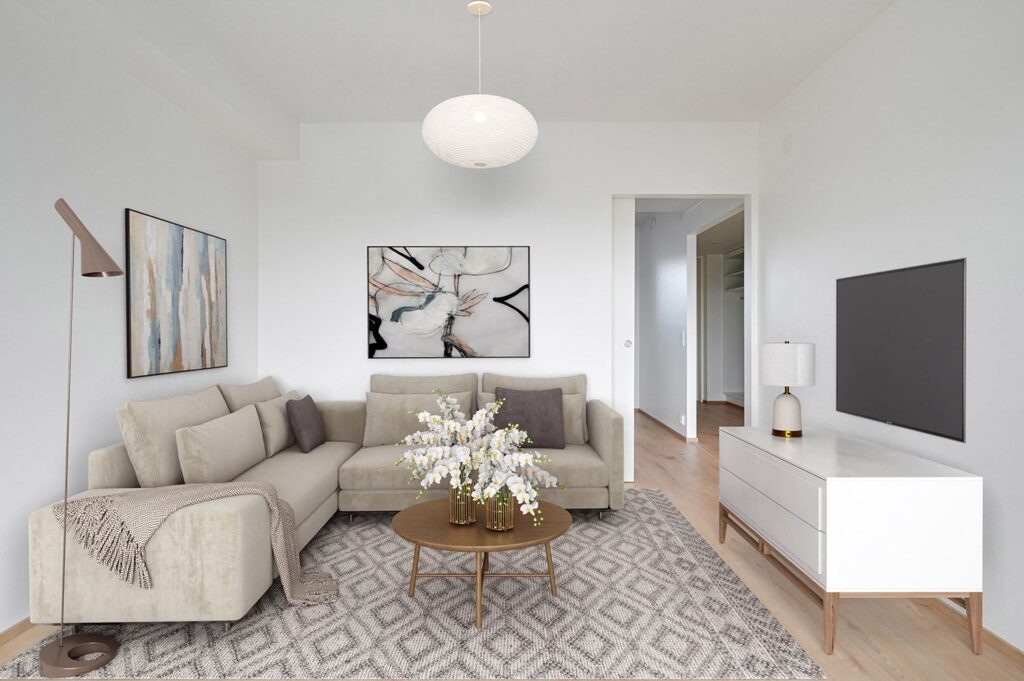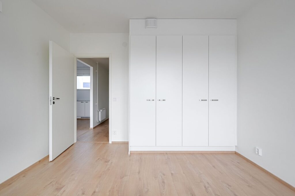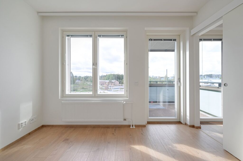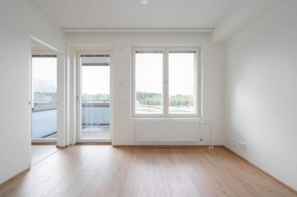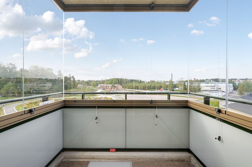 Olohuone on sijoitettu erilliseen tilaan, jonne pääsee keittiöstä sekä makuuhuoneesta liukuovien kautta. Keittiön ja olohuoneen pohjaratkaisu mahdollistaa sen, että asunto sopii hyvin myös esimerkiksi kämppisasumiseen. Asunnon tilavassa makuuhuoneessa on valmiina säilytystilaa. Kompaktille lasitetulle parvekkeelle pääsee kulkemaan niin olohuoneesta kuin makuuhuoneestakin.