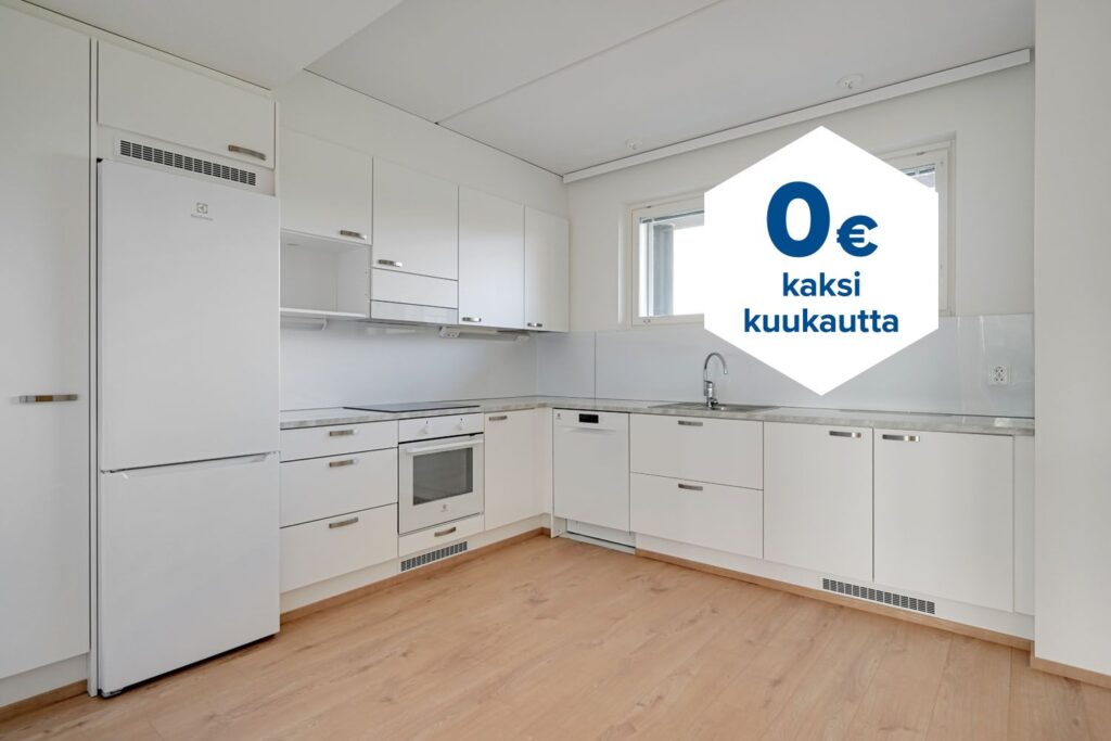 Tee sopimus nyt – saat kahden ensimmäisen kuukauden käyttövastikkeen hintaan 0 € ja vakuusmaksun 250 €. Edut ovat voimassa 15.4.2026 saakka ja koskevat vain vapaita asuntoja ja uusia asiakkaita. Vesi- ja autopaikkamaksut normaalisti. Edellyttää 12 kuukauden asumista.