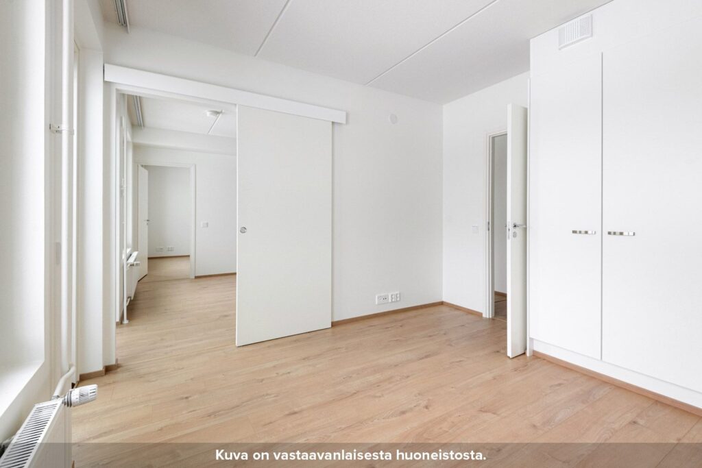 Asunnossa on kaksi tilavaa makuuhuonetta, joissa on kaappitilaa. Asunnon kompaktille lasitetulle parvekkeelle pääsee kulkemaan niin olohuoneesta kuin toisesta makuuhuoneestakin.