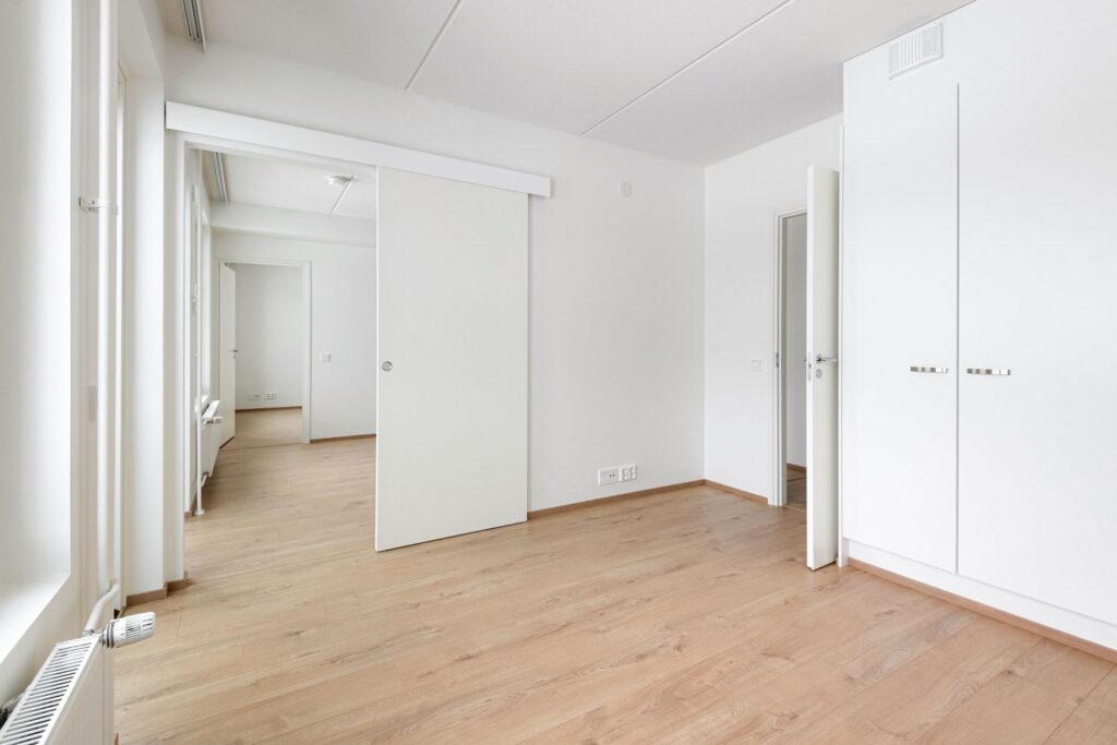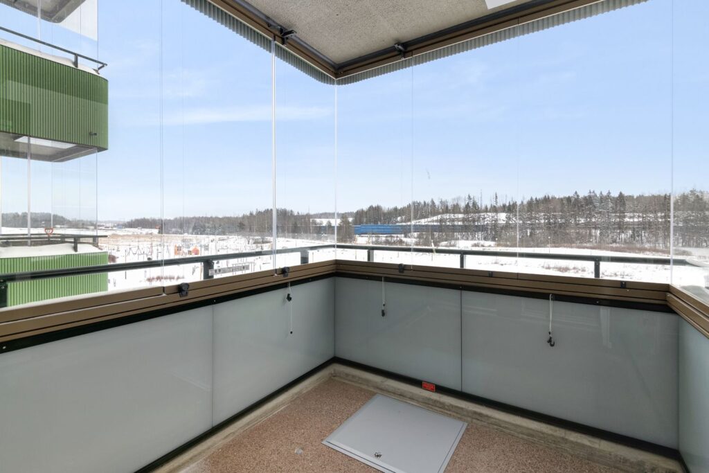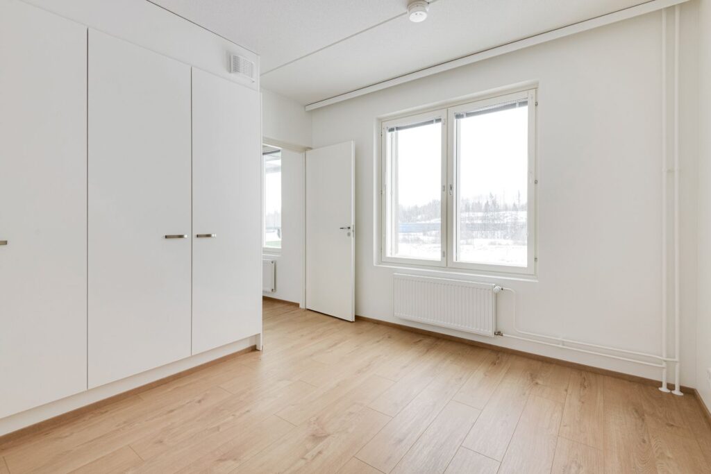 Asunnossa on kaksi tilavaa makuuhuonetta, joissa on kaappitilaa. Asunnon kompaktille lasitetulle parvekkeelle pääsee kulkemaan niin olohuoneesta kuin toisesta makuuhuoneestakin.