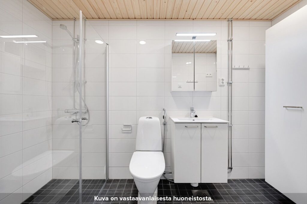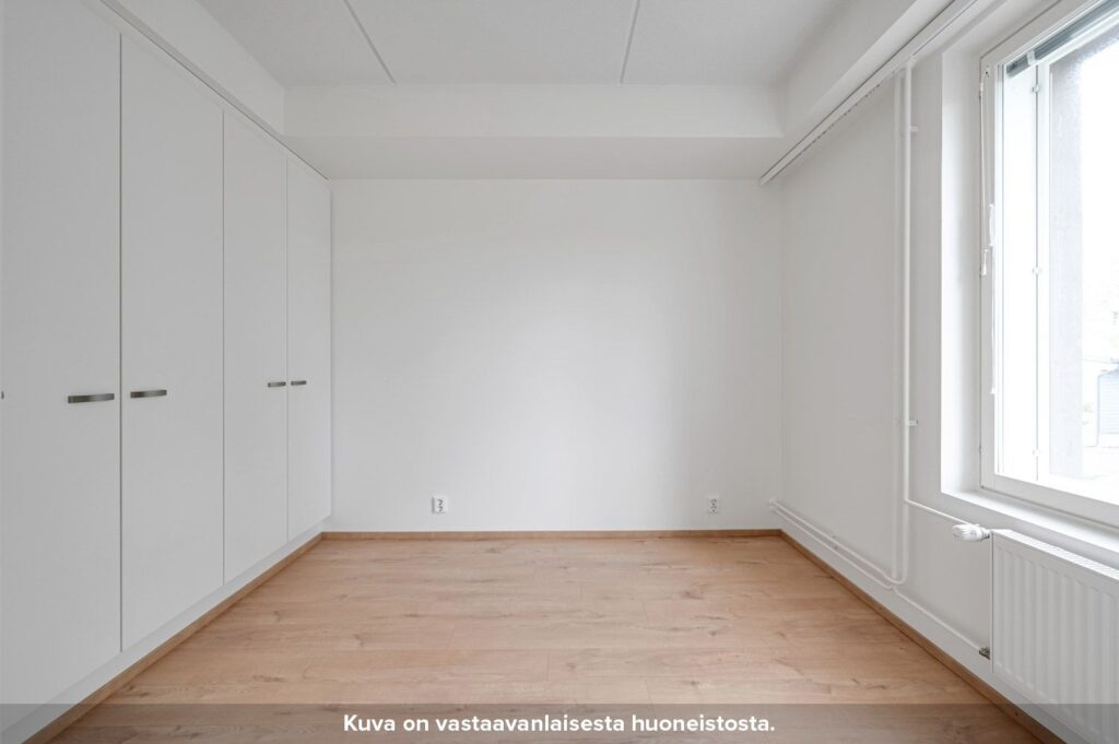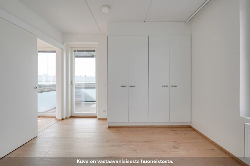 Asunnossa on kaksi tilavaa makuuhuonetta, joissa on kaappitilaa. Kompaktille lasitetulle parvekkeelle pääsee kulkemaan niin olohuoneesta kuin toisesta makuuhuoneestakin. Kylpyhuone löytyy eteisen yhteydestä. Kylpyhuoneen seinät on laatoitettu ja lattioissa on keraaminen laatta. Suihkussa on näppärästi kääntyvä suihkuseinä. Lisäksi kylpyhuoneessa on peilikaappi, jossa on pistorasia ja valaisin, allaskaappi pesualtaiden alla sekä liitos- ja tilavaraukset pyykinpesukoneelle tai pesutornille.