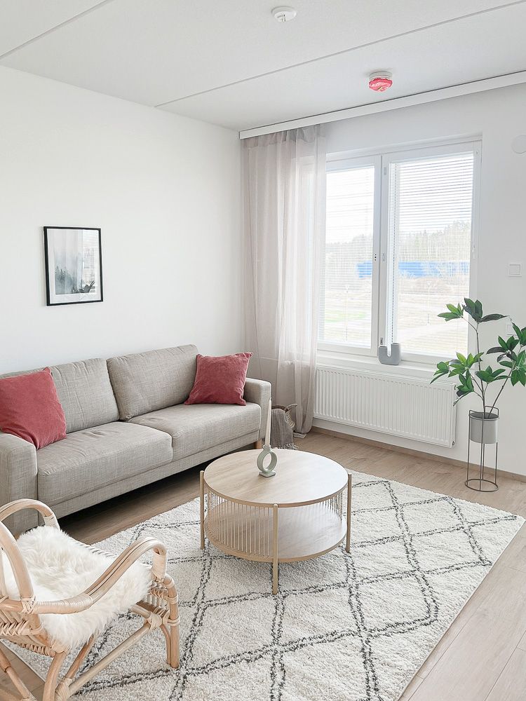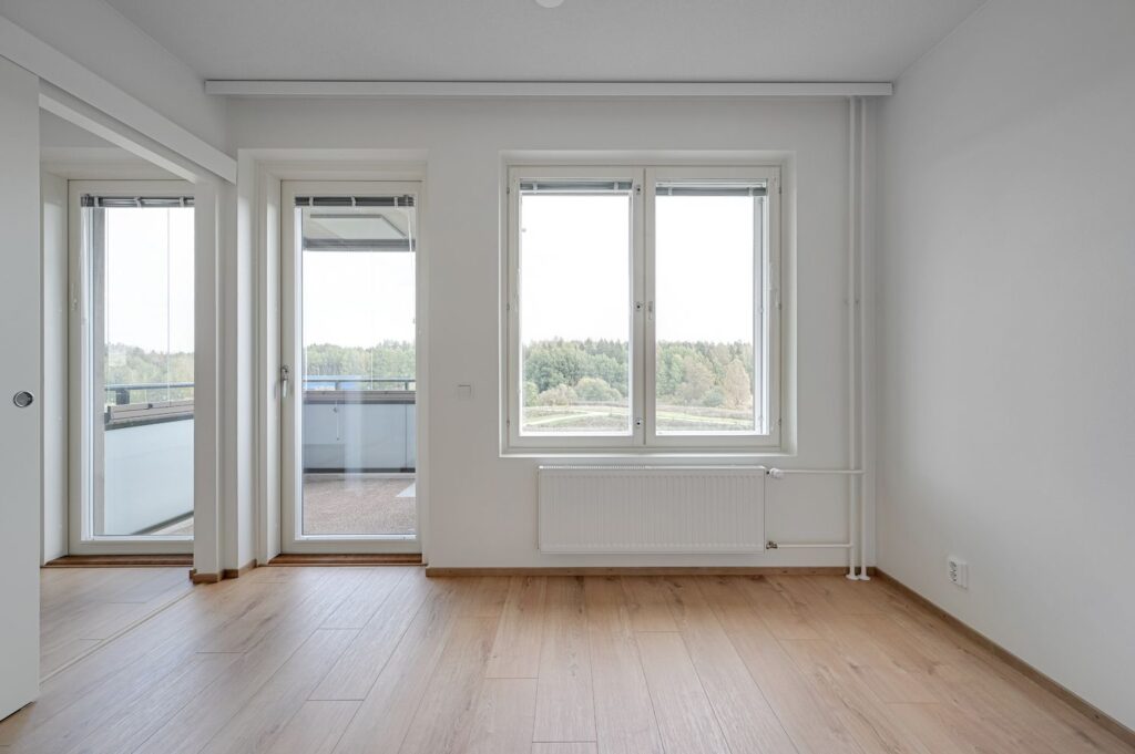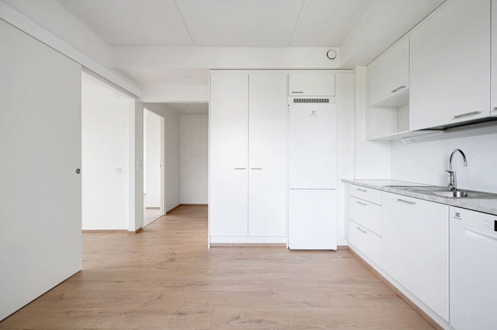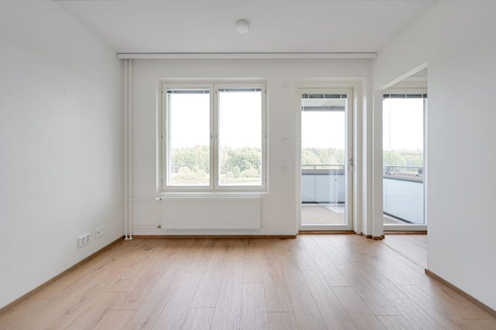 Olohuone on sijoitettu erilliseen tilaan, jonne pääsee keittiöstä sekä makuuhuoneesta liukuovien kautta. Keittiön ja olohuoneen pohjaratkaisu mahdollistaa sen, että asunto sopii hyvin myös esimerkiksi kämppisasumiseen. Asunnon tilavassa makuuhuoneessa on valmiina säilytystilaa. Kompaktille lasitetulle parvekkeelle pääsee kulkemaan niin olohuoneesta kuin makuuhuoneestakin.