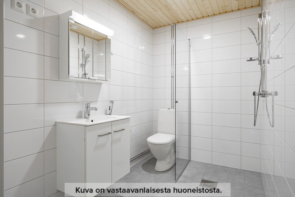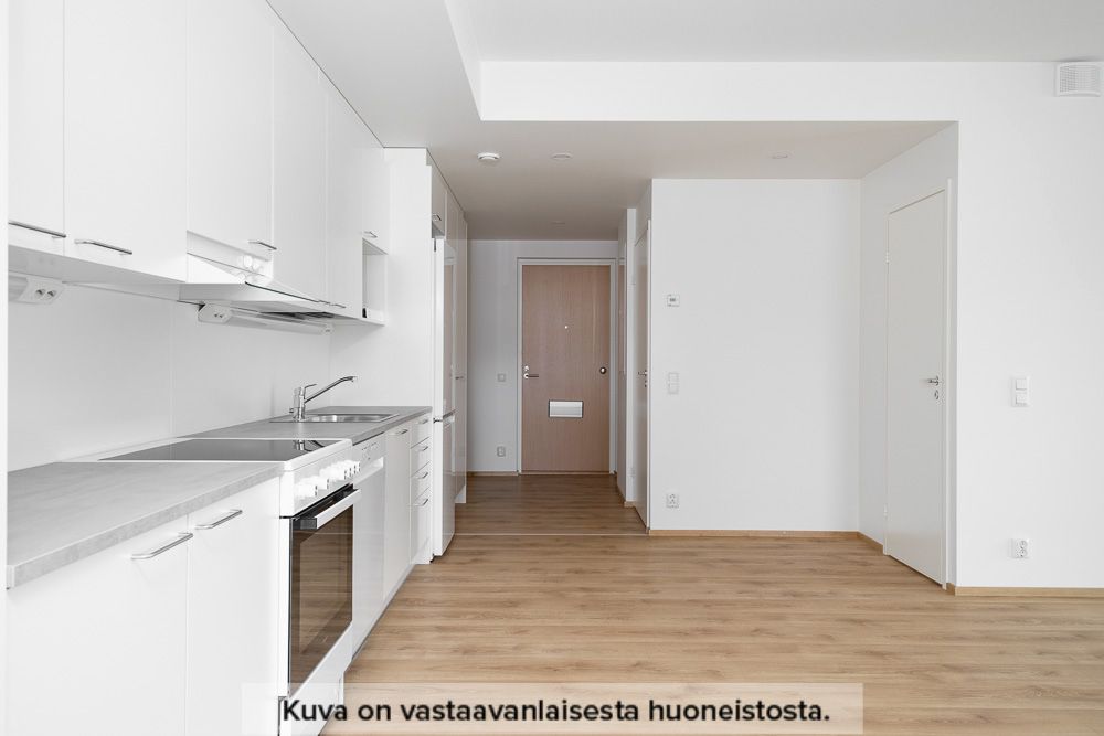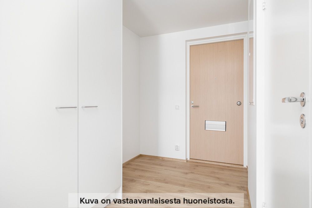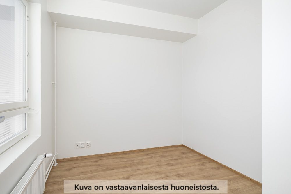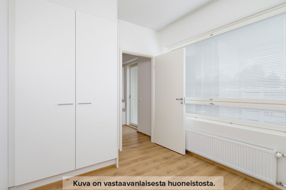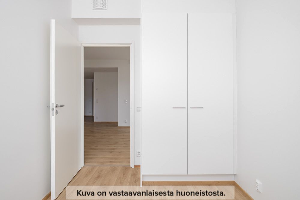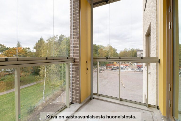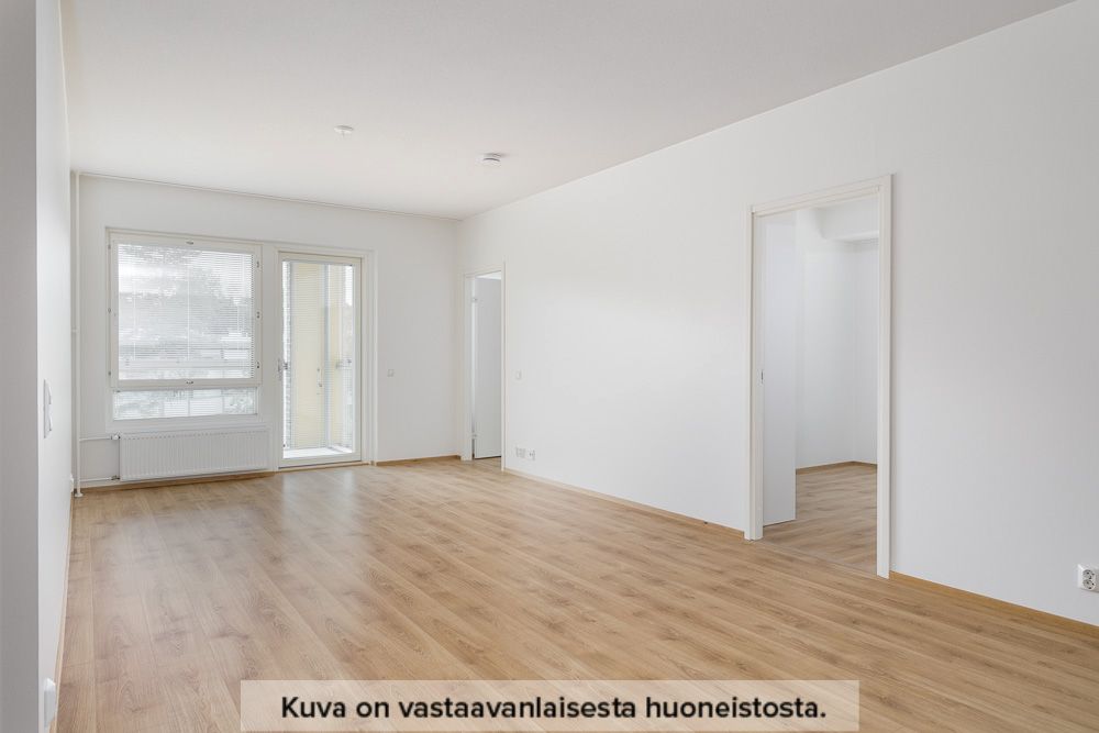 Toisessa kerroksessa sijaitseva kulma-asunto, johon tulee valoa kahdesta ilmansuunnasta. Keittiö ja olohuone ovat yhtenäistä tilaa, jossa on tilaa niin oleskelulle kuin ruokailullekin. Olohuoneesta on kulku lasitetulle parvekkeelle, joka toimii lisähuoneena alkukeväästä myöhäiseen syksyyn. Makuuhuoneet ovat tilavia ja niiden yhteydestä löytyy hyvin säilytystilaa. Neutraalinsävyiset pintamateriaalit toimivat hyvänä pohjana omannäköiselle sisustukselle.
