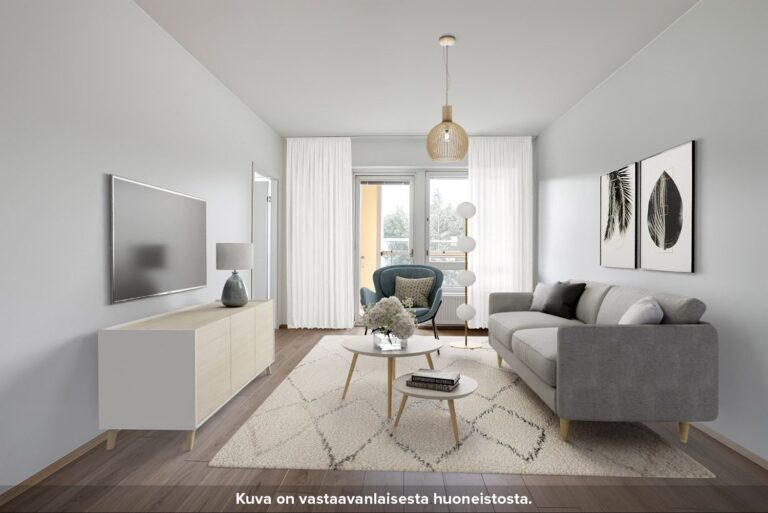 Avara toisen kerroksen kulma-asunto, johon tulee valoa kahdesta ilmansuunnasta. Keittiö ja olohuone ovat yhtenäistä tilaa, jossa on tilaa niin oleskelulle kuin ruokailullekin. Olohuoneesta on kulku lasitetulle parvekkeelle, joka toimii lisähuoneena alkukeväästä myöhäiseen syksyyn. Makuuhuoneet ovat tilavia ja niiden yhteydestä löytyy hyvin säilytystilaa.