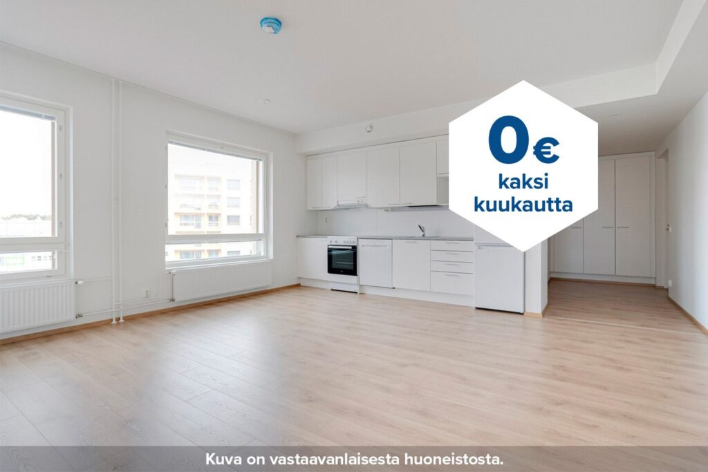Tee sopimus nyt – saat kahden ensimmäisen kuukauden käyttövastikkeen hintaan 0 € ja vakuusmaksun 250 €. Edut ovat voimassa 15.4.2026 saakka ja koskevat vain vapaita asuntoja ja uusia asiakkaita. Vesi- ja autopaikkamaksut normaalisti. Edellyttää 12 kuukauden asumista.