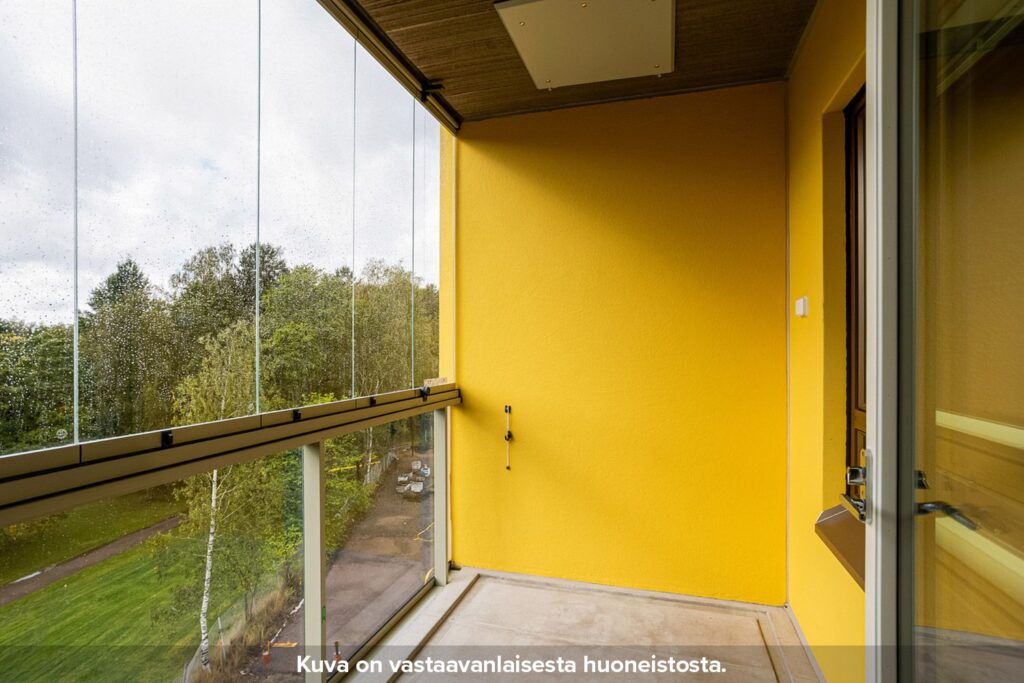 Keittiö ja olohuone ovat yhtenäistä tilaa. Makuuhuone on tilava ja sen yhteydestä löytyy hyvin säilytystilaa. Olohuoneen yhteydestä on kulku lasitetulle parvekkeelle, joka toimii lisähuoneena alkukeväästä myöhäiseen syksyyn.