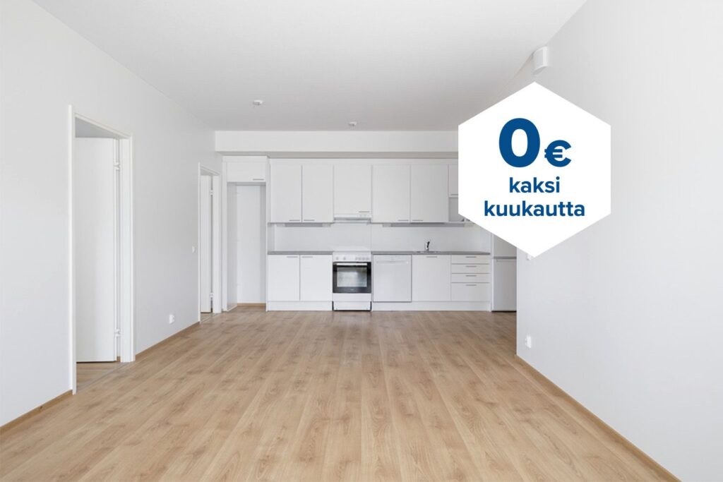 Tee sopimus nyt – saat kahden ensimmäisen kuukauden käyttövastikkeen hintaan 0 € ja vakuusmaksun 250 €. Edut ovat voimassa 15.4.2026 saakka ja koskevat vain vapaita asuntoja ja uusia asiakkaita. Vesi- ja autopaikkamaksut normaalisti. Edellyttää 12 kuukauden asumista.